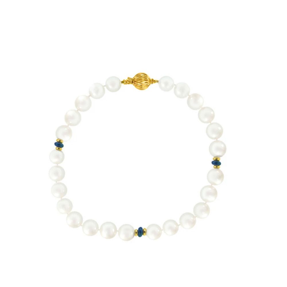 Βραχιόλι με Κ14 χρυσό κούμπωμα, μαργαριτάρια 6,0-6,5mm και πολύτιμους λίθους - M121143S