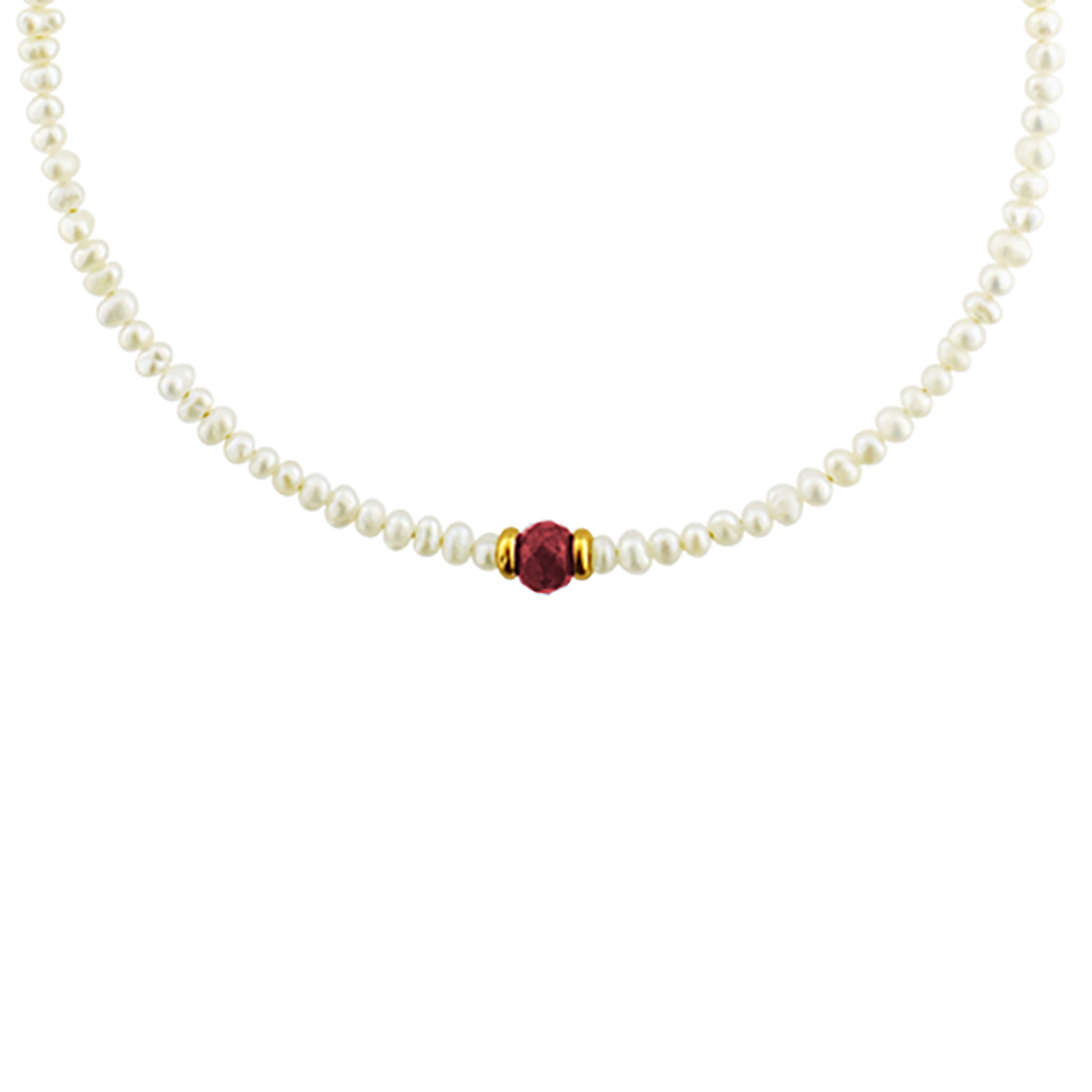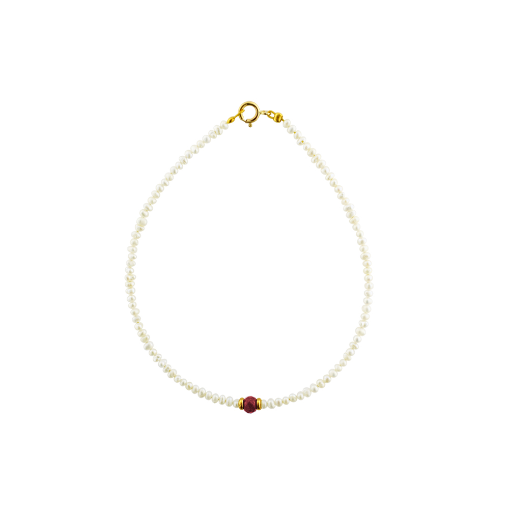 Βραχιόλι με Κ14 χρυσά στοιχεία, λευκά μαργαριτάρια και ρουμπίνι - M122473R