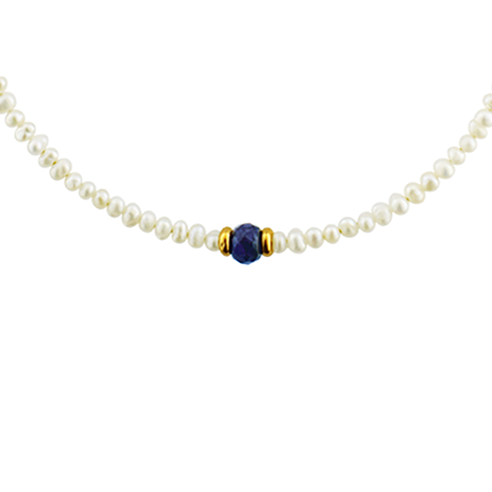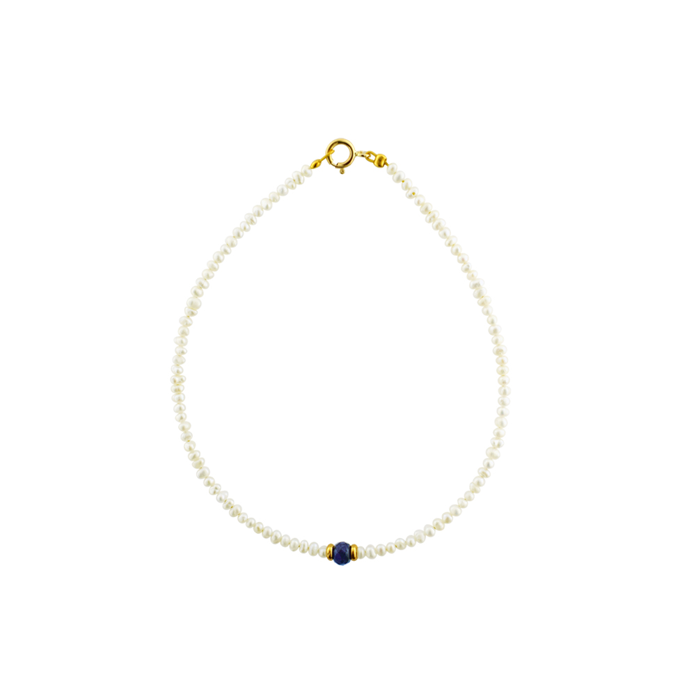 Βραχιόλι με K14 χρυσά στοιχεία, λευκά μαργαριτάρια και ζαφείρι - M122473S