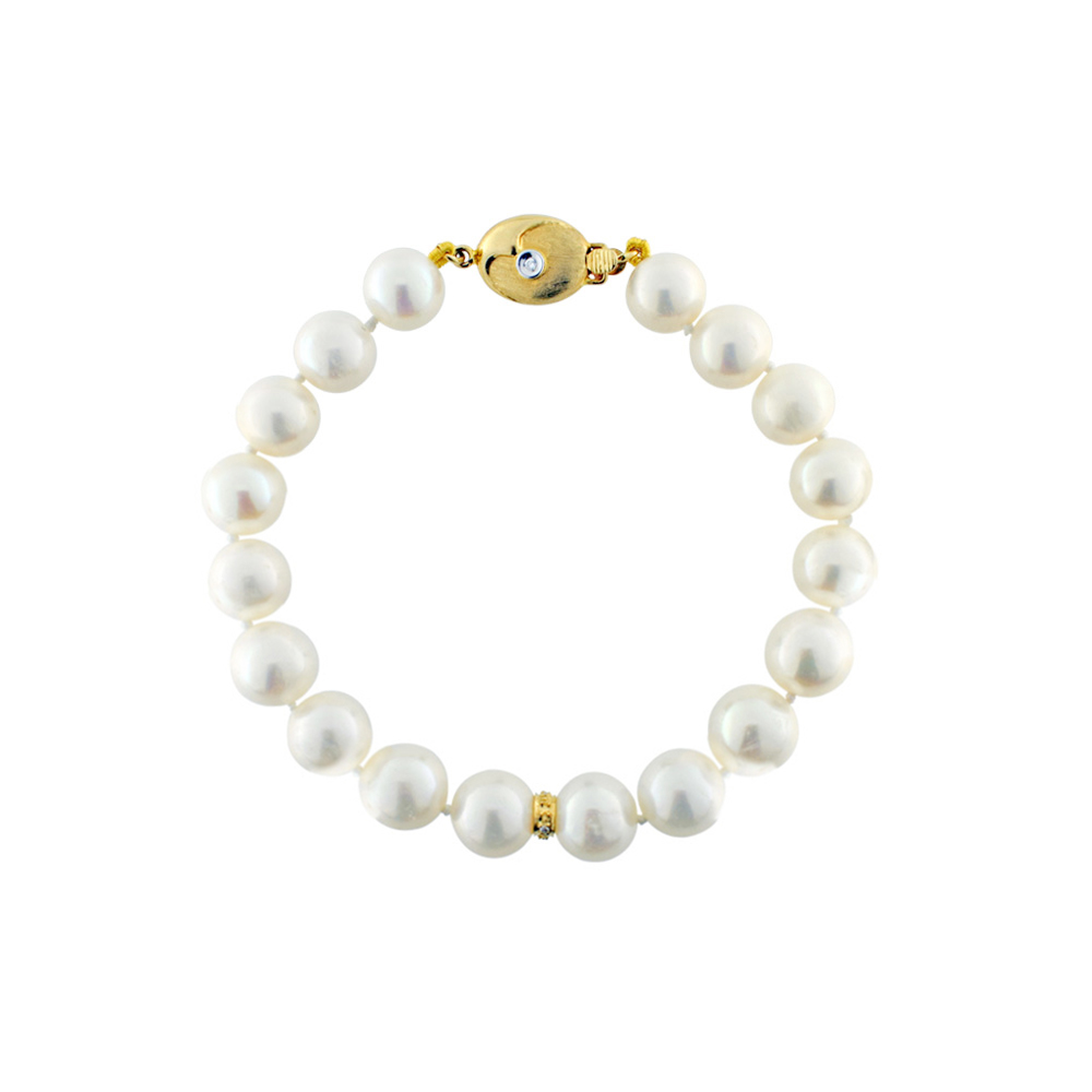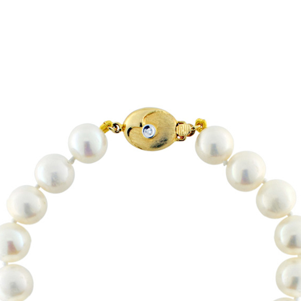 • Ένα φανταστικό βραχιόλι με λευκά μαργαριτάρια γλυκού νερού Fresh Water Pearl διαμέτρου 9 - 10 χιλιοστών άριστης ποιότητας και σχήματος Round (στρόγγυλο).