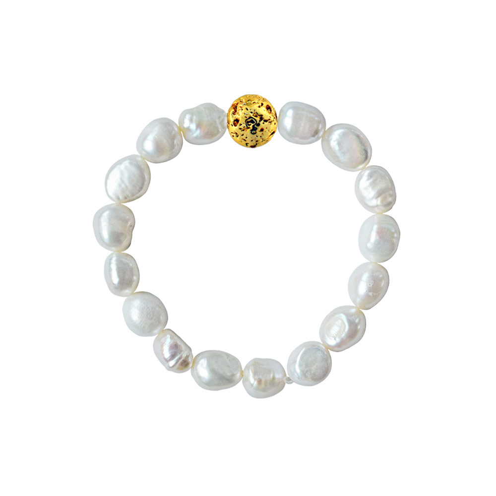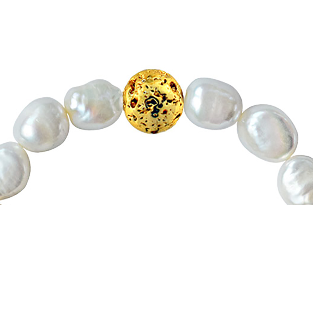 • Ένα υπέροχο βραχιόλι με λευκά μαργαριτάρια Fresh Water Pearl, διαμέτρου 8 x 10 χιλιοστών.