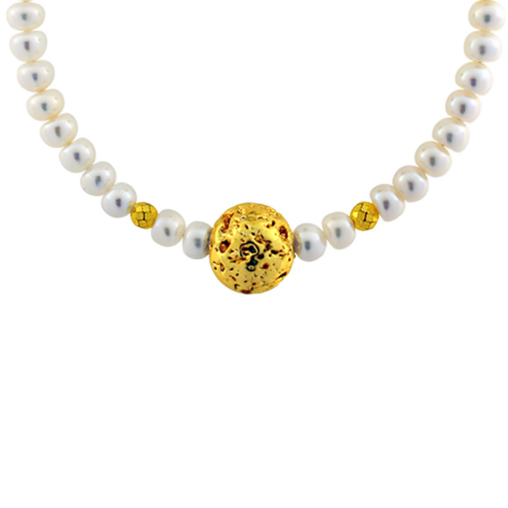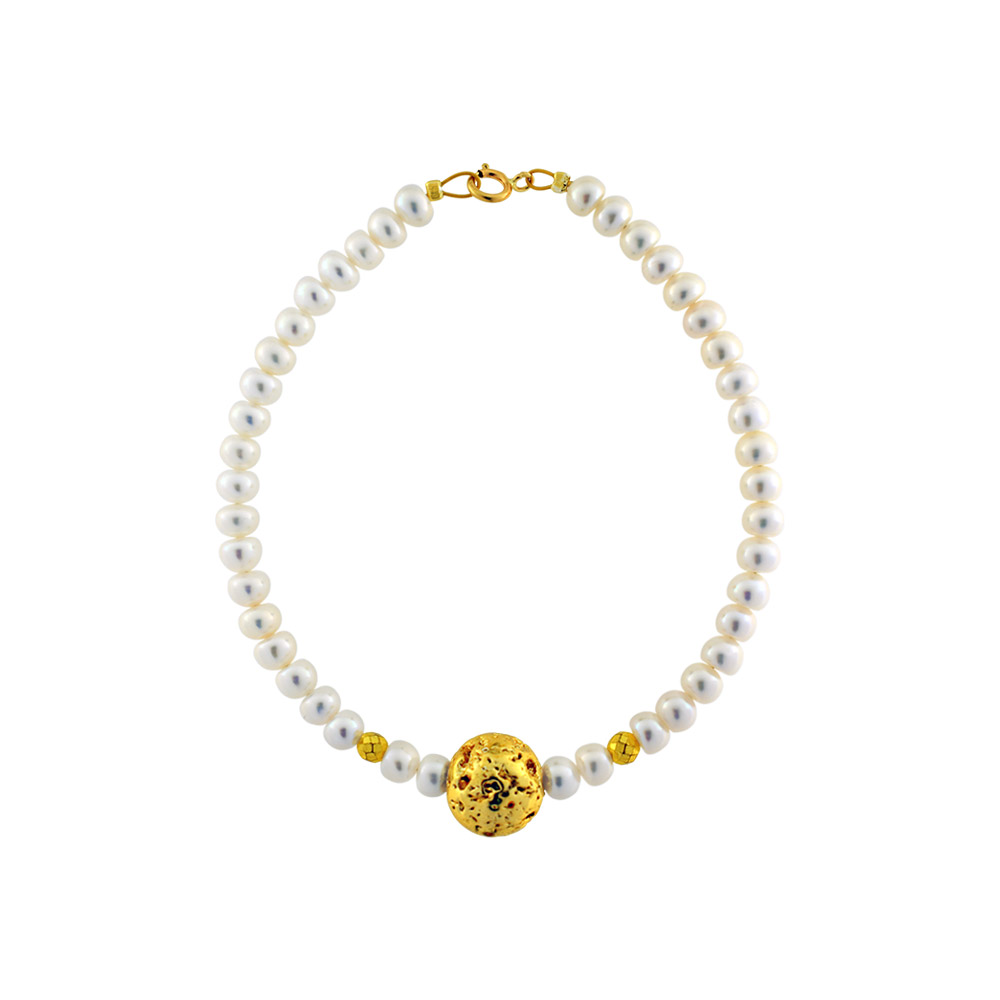Βραχιόλι με χρυσό κούμπωμα Κ14, μαργαριτάρια, Lava και Hematite - M123488