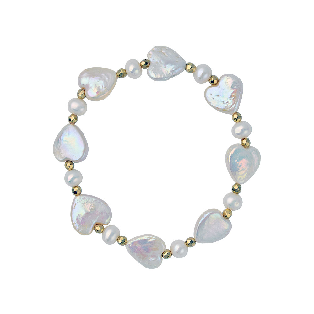 • Ένα υπέροχο βραχιόλι με λευκά μαργαριτάρια Fresh Water Pearl διαμέτρου 12 - 13 χιλιοστών σε σχήμα καρδιάς.