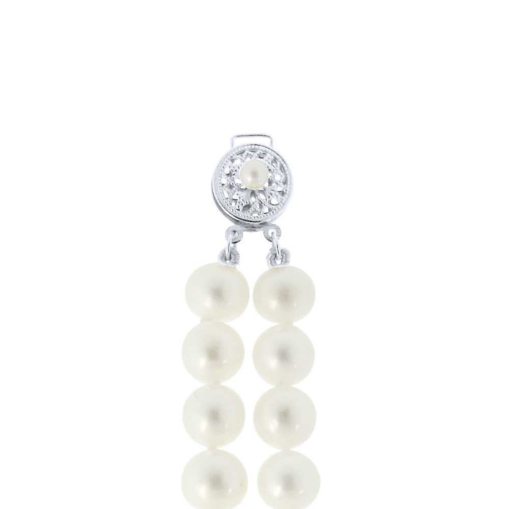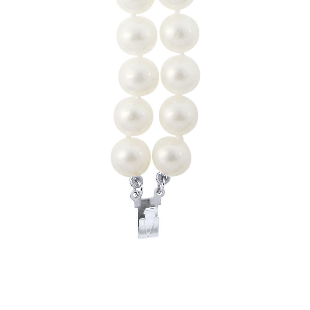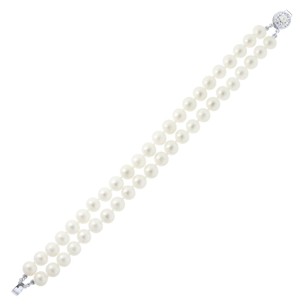 • Ένα υπέροχο βραχιόλι με 2 σειρές λευκά μαργαριτάρια, άριστης ποιότητας διαμέτρου 7 - 7,5 χιλιοστών και λευκόχρυσο κούμπωμα ασφαλείας 14 καρατίων.