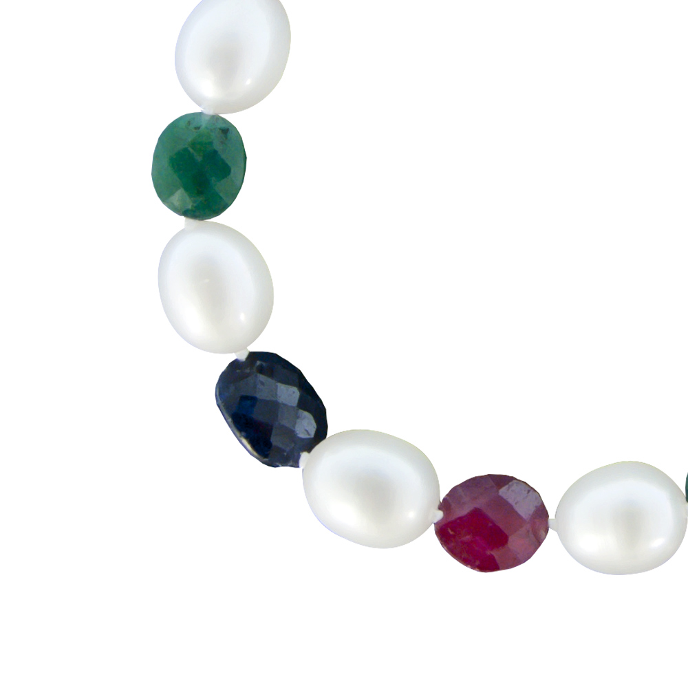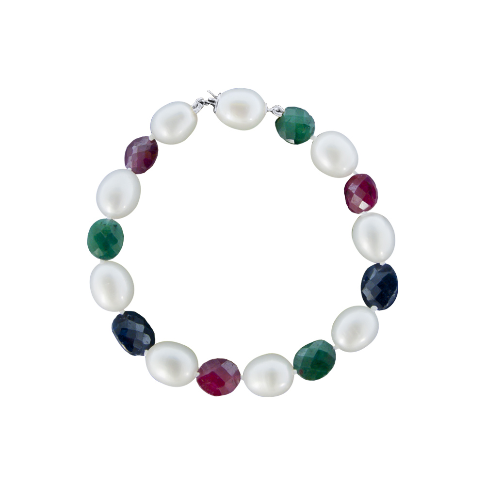 Βραχιόλι λευκόχρυσο Κ18 με μαργαριτάρια 10x12mm και πολύτιμους λίθους - W121700
