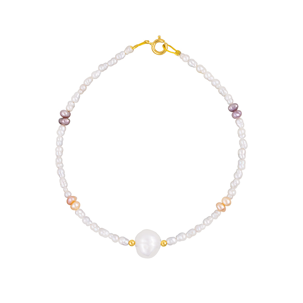 Βραχιόλι με Κ14 χρυσό κούμπωμα και μαργαριτάρια - B126043