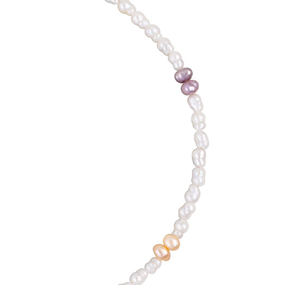 Διάσπαρτα στο κολιέ υπάρχουν multicolor μαργαριτάρια διαμέτρου 3x4 χιλιοστών.