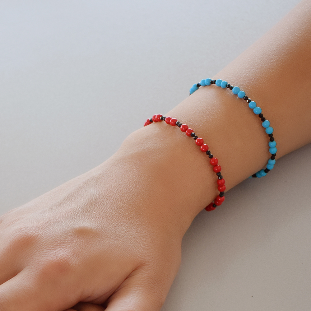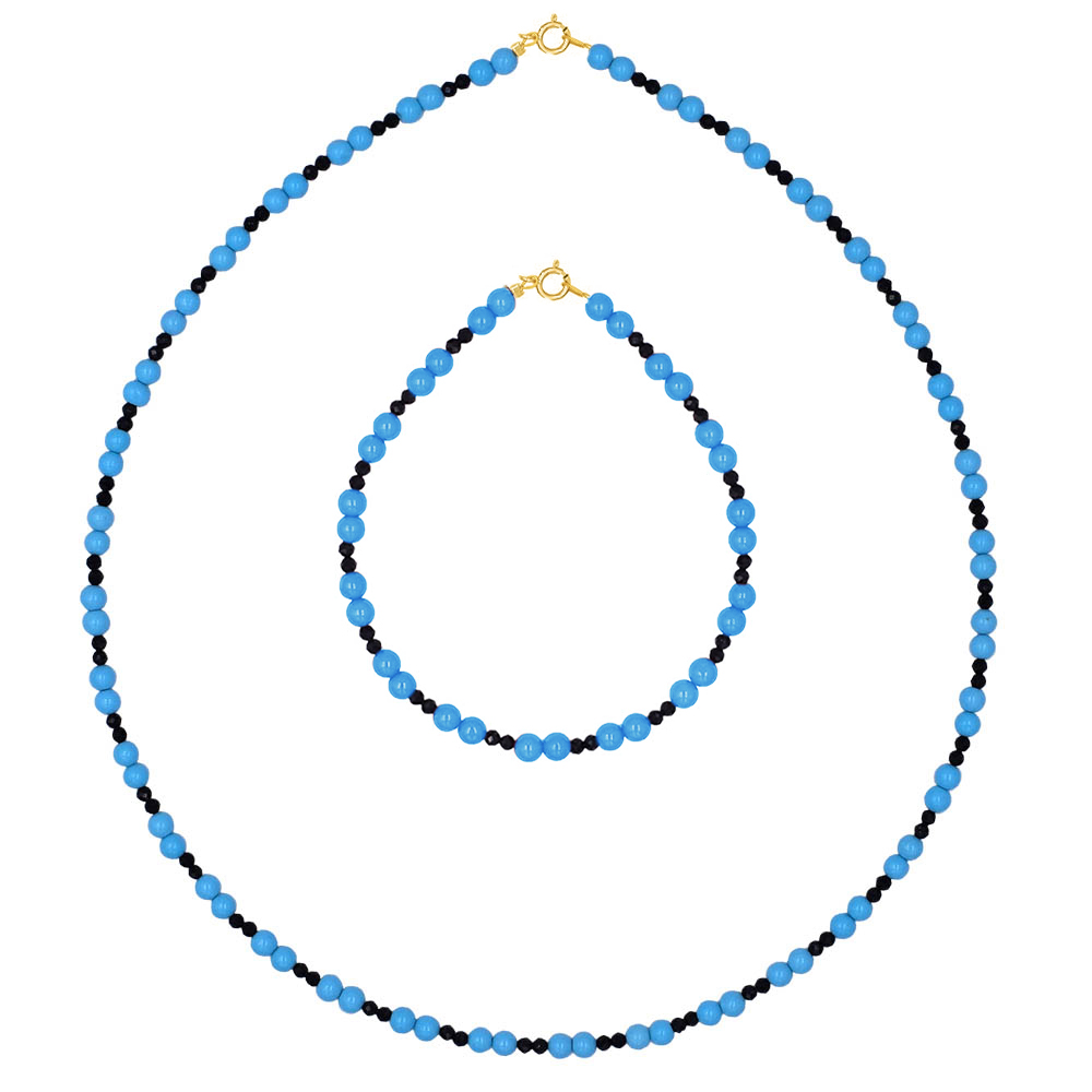 • Ένα υπέροχο βραχιόλι που αποτελείται από 30 τιρκουάζ διαμέτρου 4 - 4,5 χιλιοστών και 28 spinel 2 - 2,5 χιλιοστών.