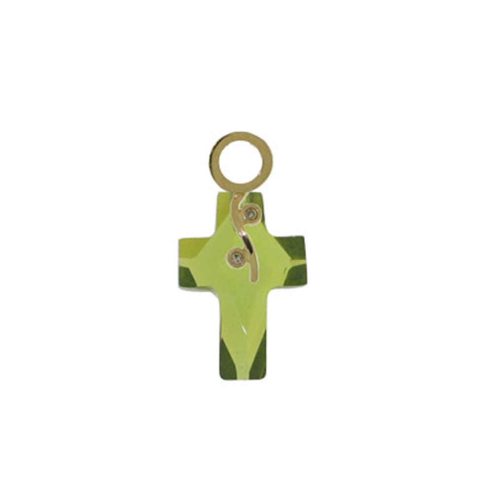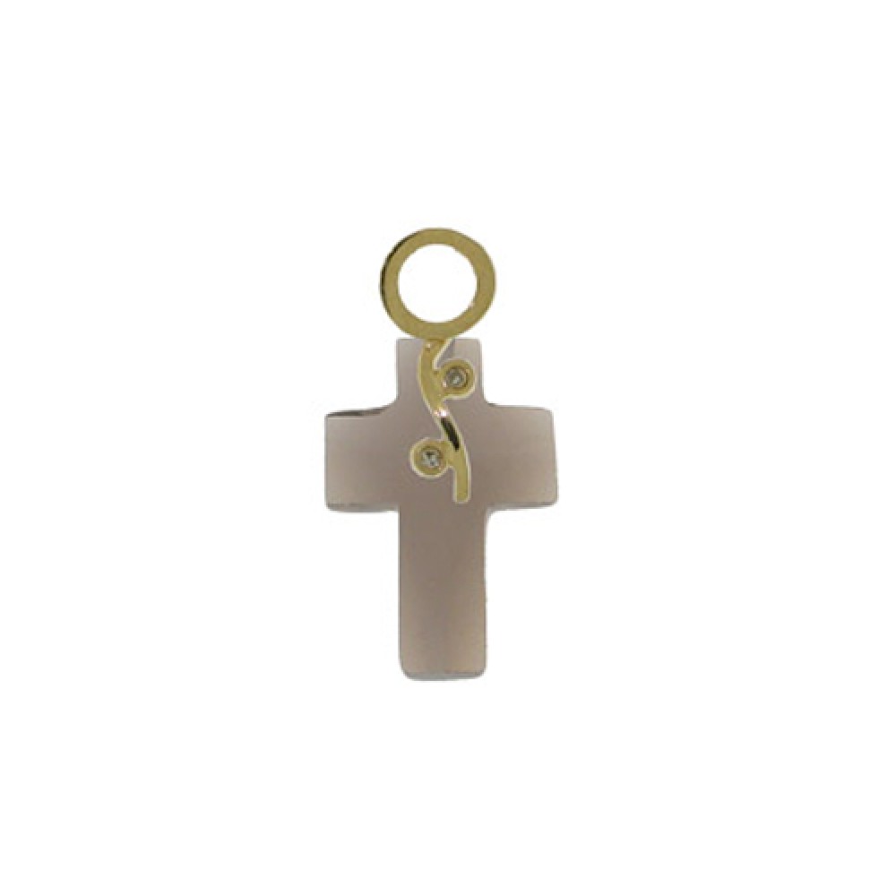 • Μενταγιόν Σταυρός, Κ18 Χρυσό ή Λευκόχρυσο, 15mm Cross Fase, peridot ή Pink Quartz & 2 Διαμάντια 0.01ct