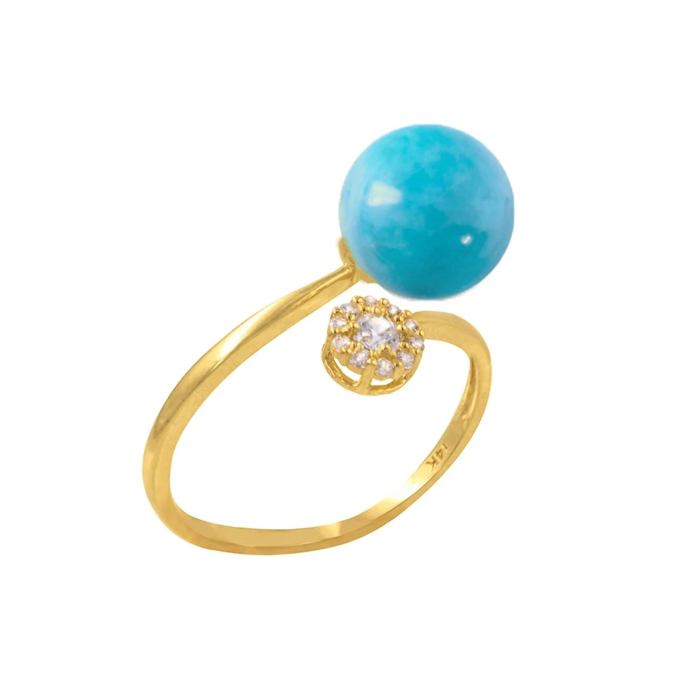 • Ένα υπέροχο δαχτυλίδι από χρυσό 14 καρατιών , με Τιρκουάζ άριστης ποιότητας διαμέτρου 10 χιλιοστών και σχήματος Round.