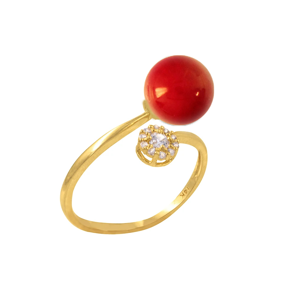 • Ένα υπέροχο δαχτυλίδι από χρυσό 14 καρατιών , με Κοράλλι άριστης ποιότητας διαμέτρου 7,5-8 και σχήματος Round.