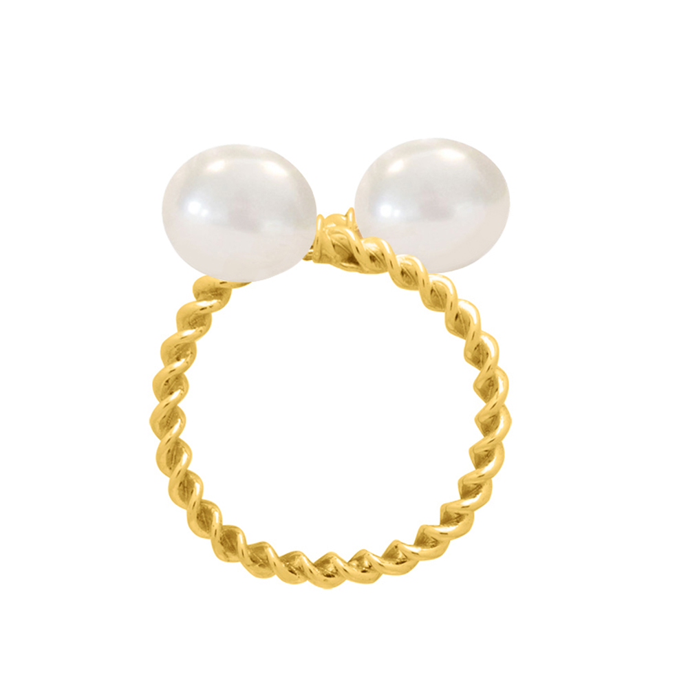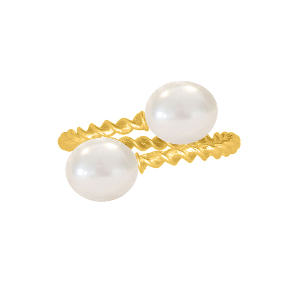• Ένα υπέροχο χειροποίητο στριφτό δαχτυλίδι με χρυσό 14 καρατιών και 2 λευκά μαργαριτάρια LONG διαμέτρου 8-10 χιλιοστών.