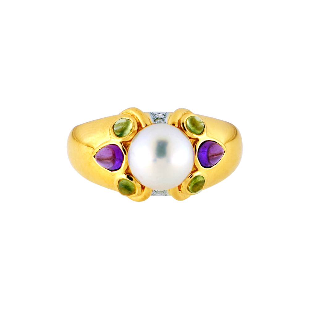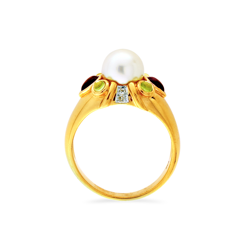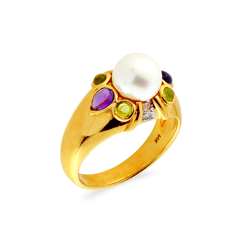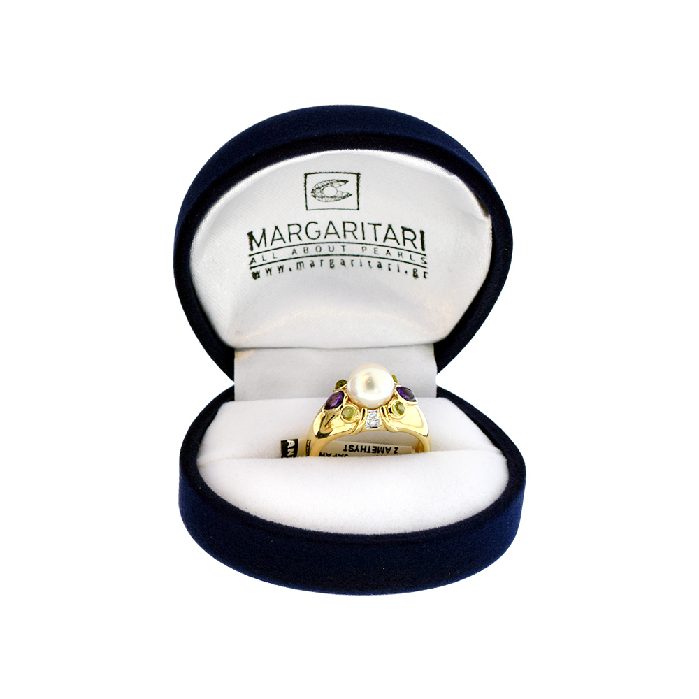 Δαχτυλίδι με μαργαριτάρι Akoya και πολύτιμους λίθους σε χρυσό Κ14 - M121782