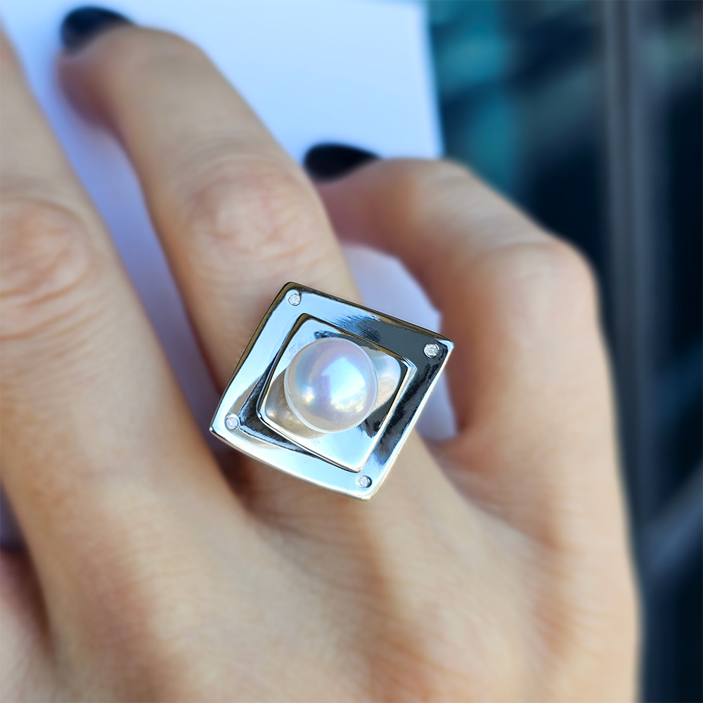• Υπέροχο δαχτυλίδι από ασήμι 925, με λευκό μαργαριτάρι Fresh Water Pearl, άριστης ποιότητας διαμέτρου 8 χιλιοστών