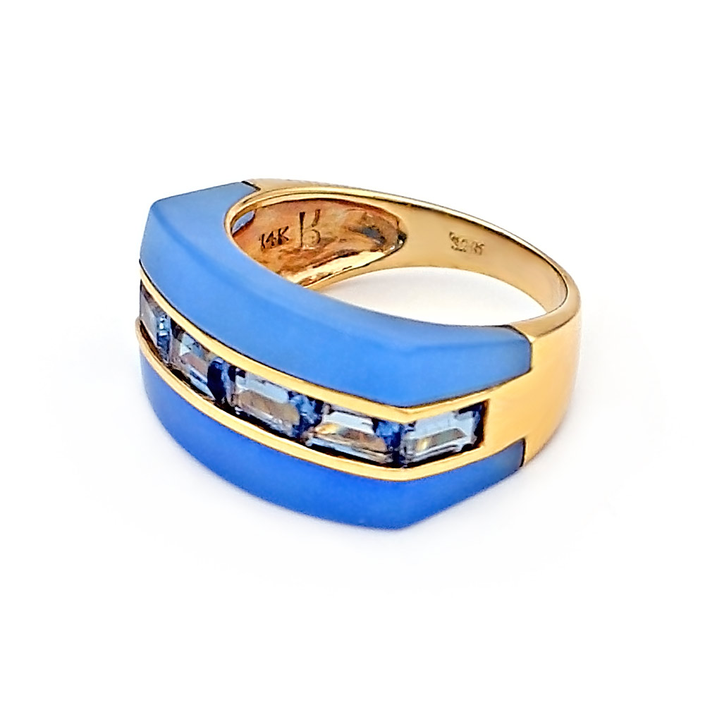 • Ένα υπέροχο χειροποίητο δαχτυλίδι σε χρυσό 14 καρατίων με φυσικούς ορυκτούς ημιπολύτιμους λίθους Blue Topaz και Jade σε μοναδικές αποχρώσεις και με ιδιαίτερη κοπή.