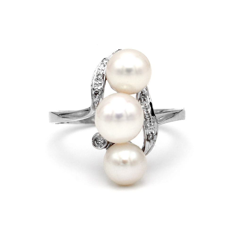 Δαχτυλίδι λευκόχρυσο Κ18  με μαργαριτάρια Akoya - M317298