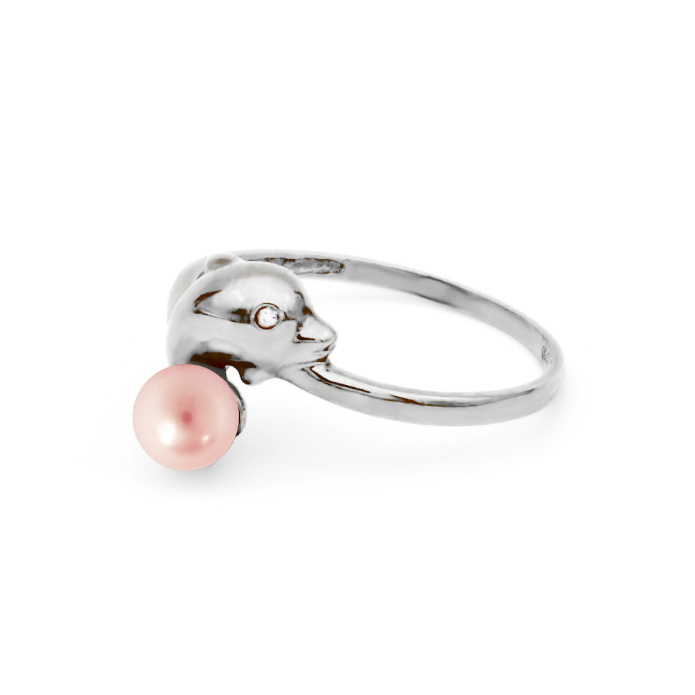 • Ένα υπέροχο δαχτυλίδι με σομόν μαργαριτάρι QTV Akoya Pearl, άριστης ποιότητας διαμέτρου 5,5 χιλιοστών σε σχήμα Round (στρόγγυλο).