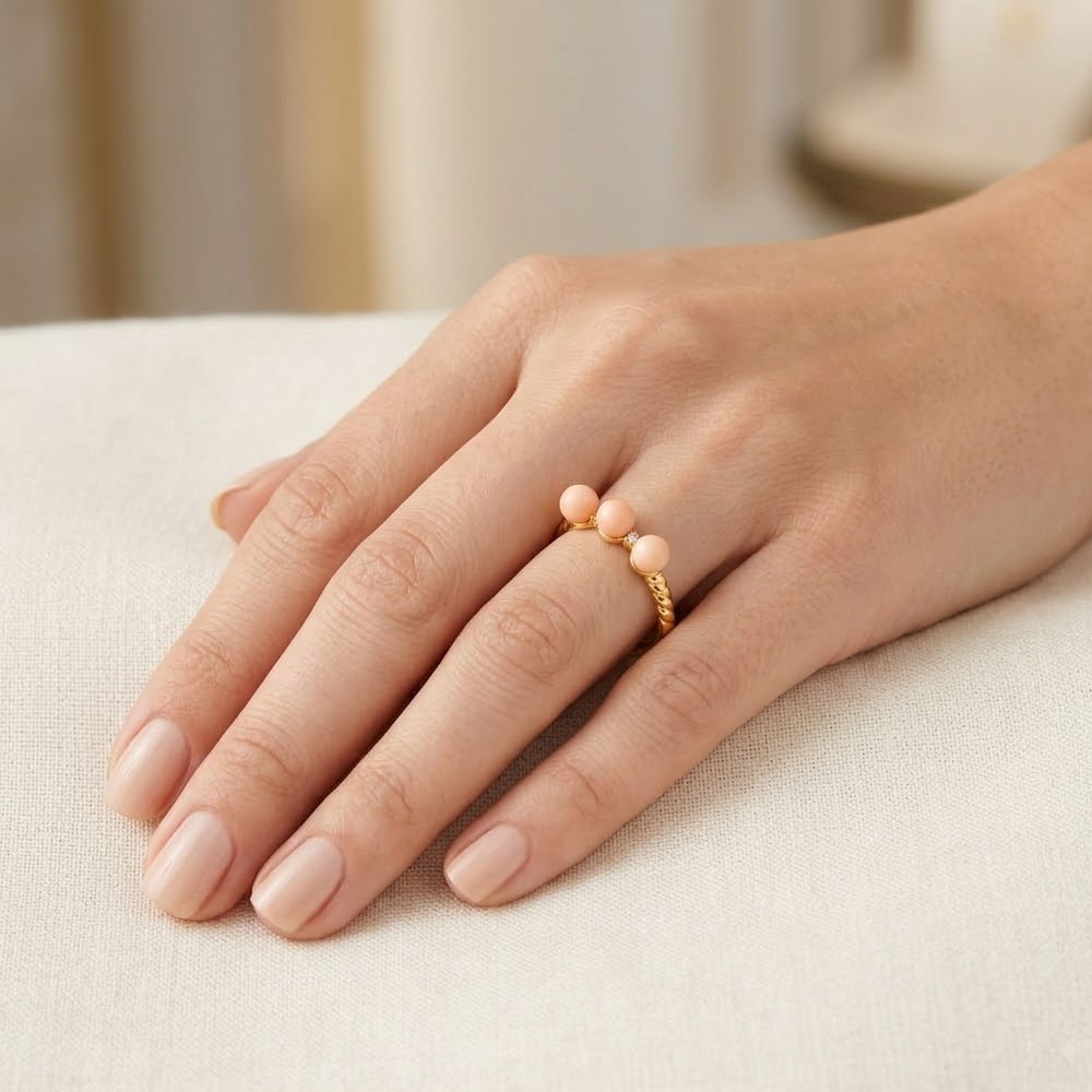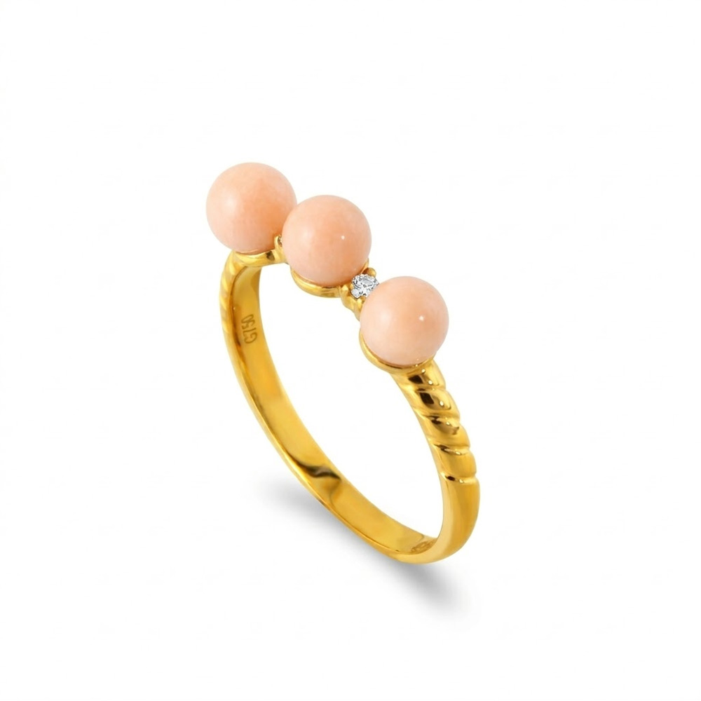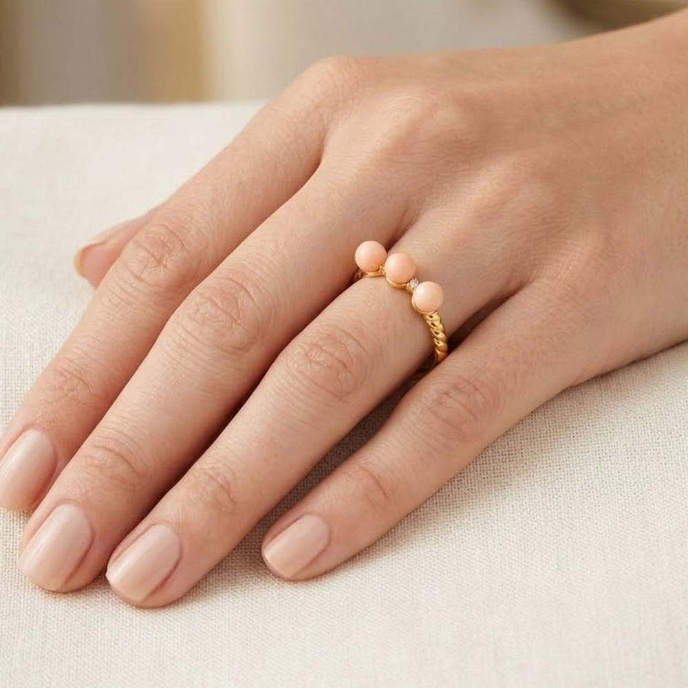 • Ένα υπέροχο δαχτυλίδι με 3 κοράλλια διαμέτρου 5,5 - 6.0 χιλιοστών σε σχήμα Round (στρόγγυλο).