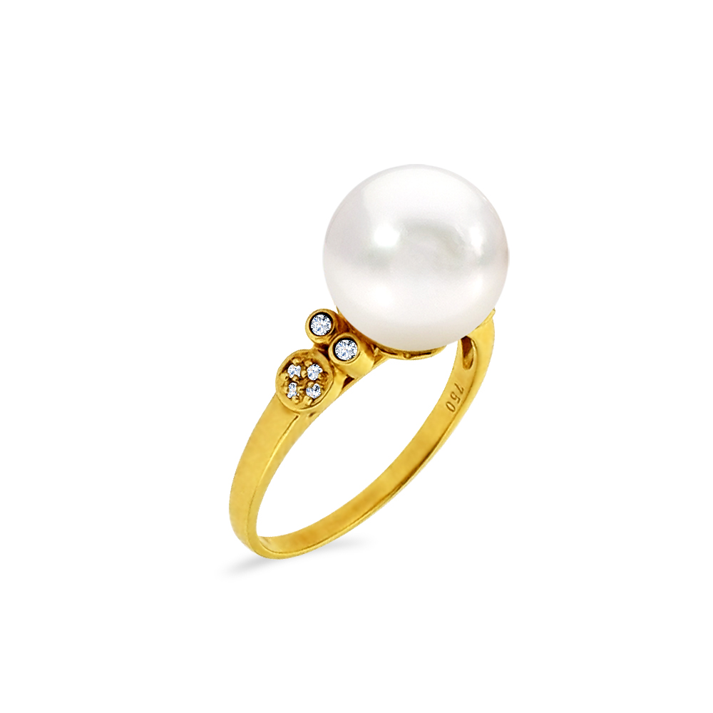 • Ένα φανταστικό δαχτυλίδι  με λευκό ολοστρόγγυλο μαργαριτάρι θαλάσσης QTV Akoya Pearl, άριστης ποιότητας διαμέτρου 10,0 - 10,5 χιλιοστών.