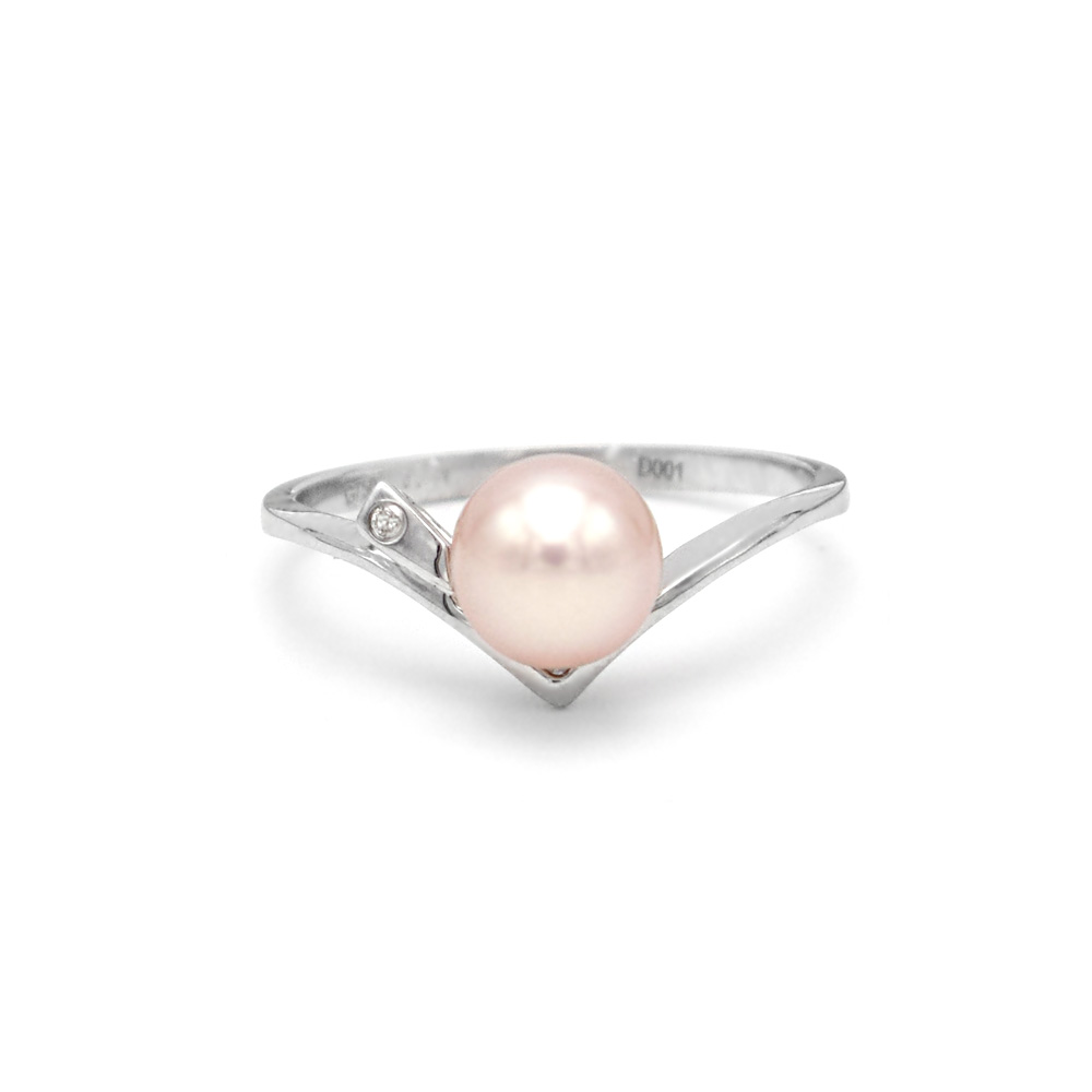 Δαχτυλίδι Κ18 λευκόχρυσο με σομόν μαργαριτάρι Akoya- W317266