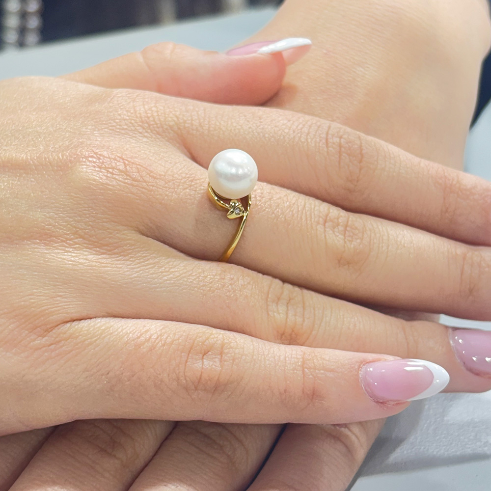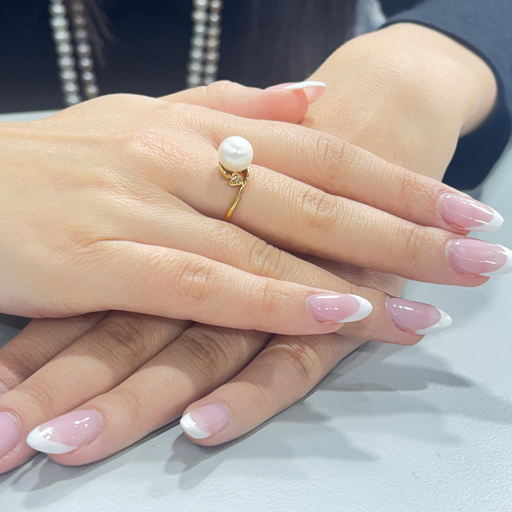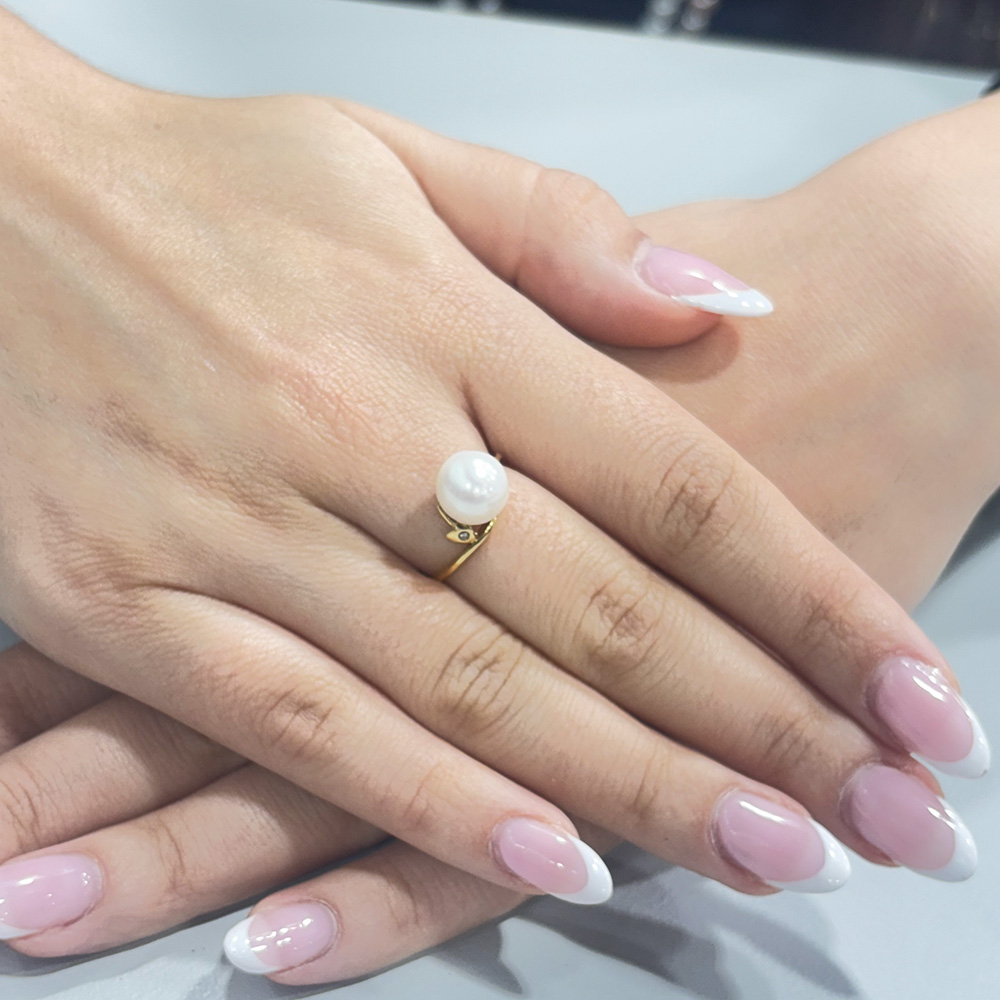 • Ένα υπέροχο δαχτυλίδι με 1 λευκό και εντυπωσιακό μαργαριτάρι QTV Akoya Pearl, άριστης ποιότητας διαμέτρου 9,5 - 10 χιλιοστών σε σχήμα Round (στρόγγυλο).