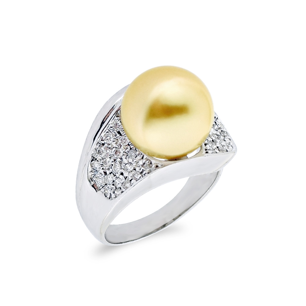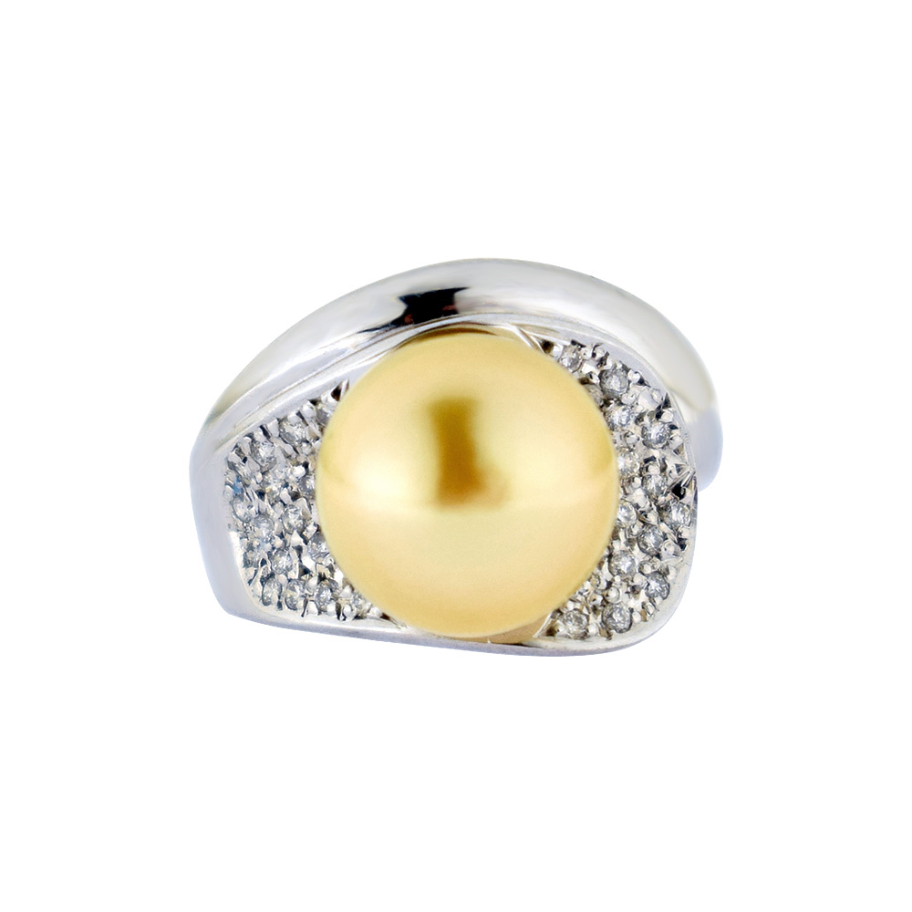 • Ένα υπέροχο δαχτυλίδι με ένα σπάνιο και εντυπωσιακό φυσικό Gold μαργαριτάρι South Sea Indonesia, σε σχήμα Round (στρόγγυλο) άριστης ποιότητας, διαμέτρου 11,5 χιλιοστών και βάρους 0,56 MOMME.