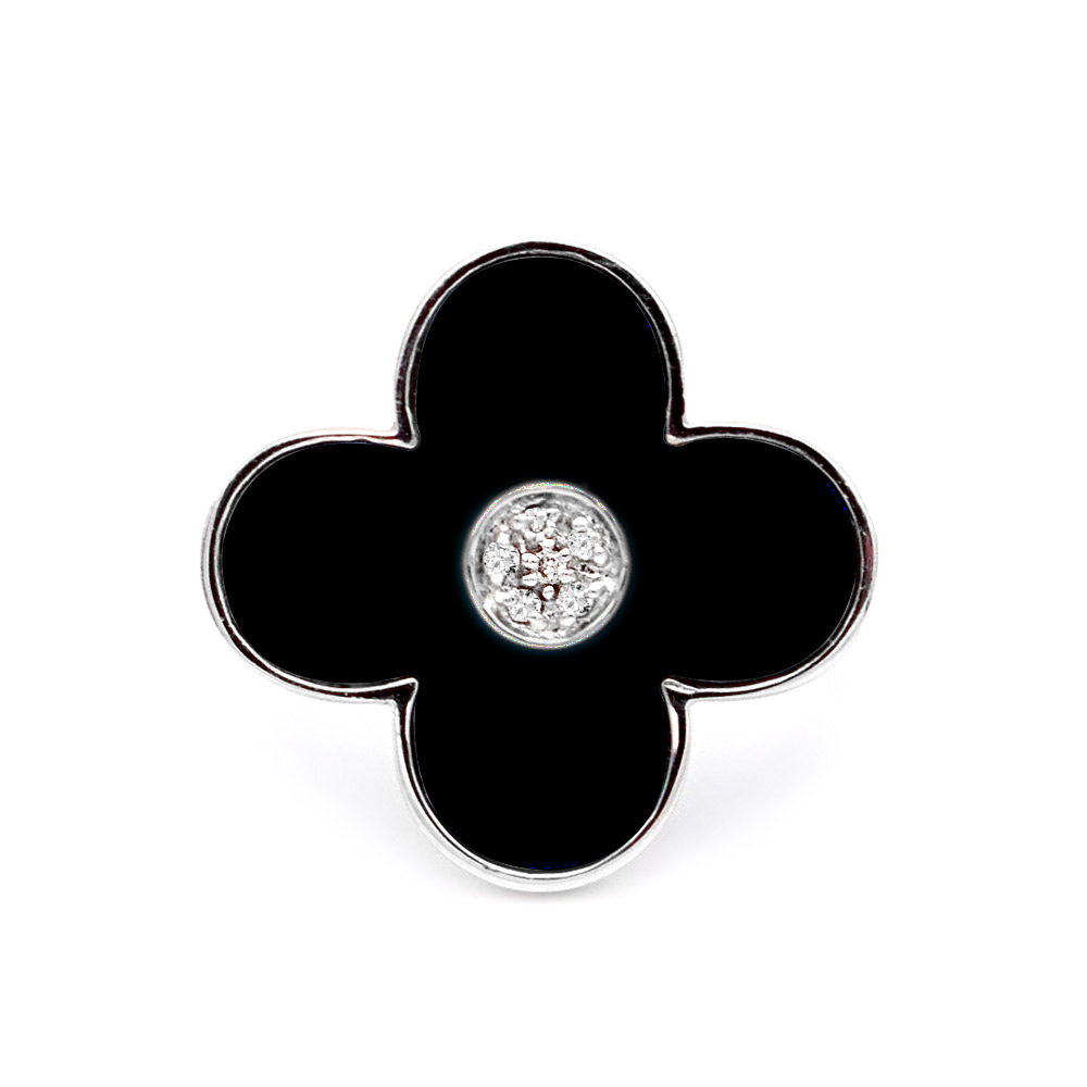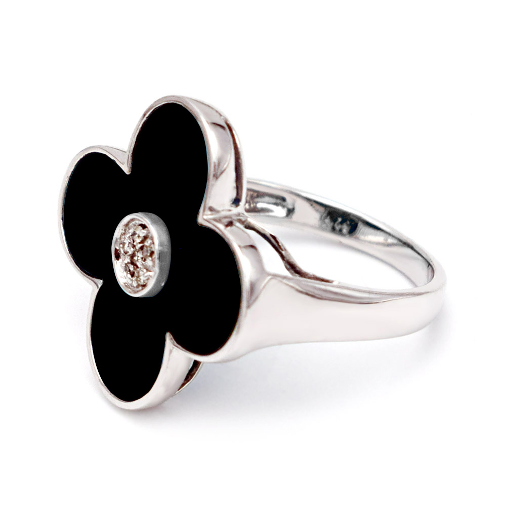 • Ένα μοναδικό δαχτυλίδι από 18 καράτια λευκόχρυσου με όνυχα σε σχήμα Flower.
