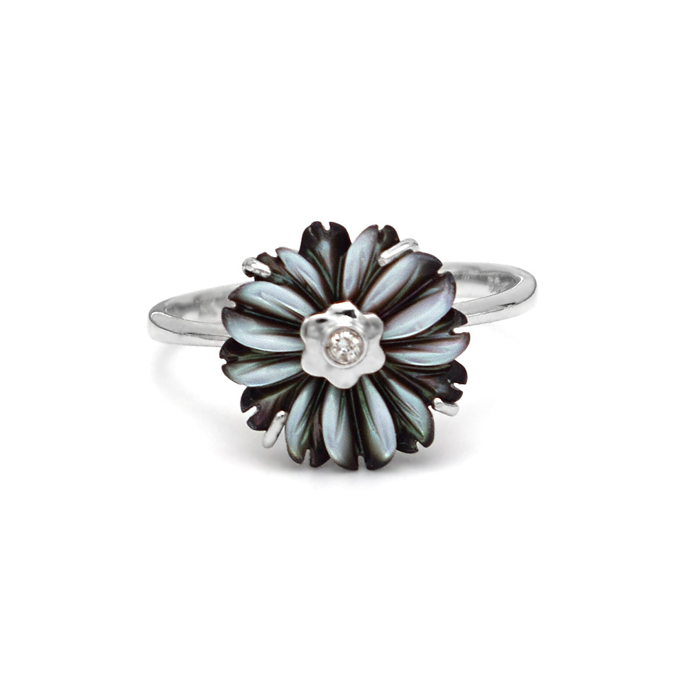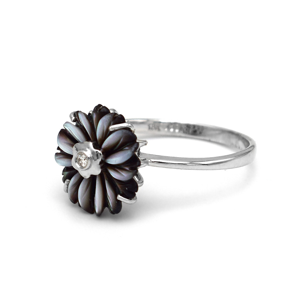 Δαχτυλίδι με μαύρο λουλούδι σε λευκόχρυση βάση Κ18 - M311332