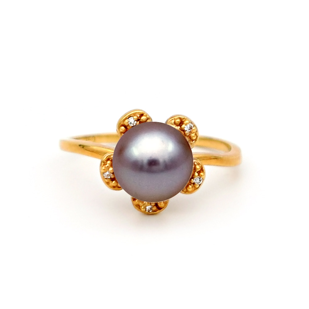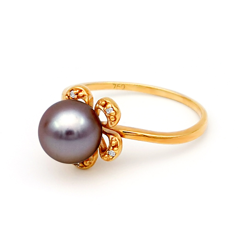 • Ένα υπέροχο δαχτυλίδι από 18 καράτια χρυσού με μαύρο μαργαριτάρι QTV Akoya Pearl, άριστης ποιότητας διαμέτρου 7,5 - 8 χιλιοστών και 5 διαμάντια 0,03 καρατίων.