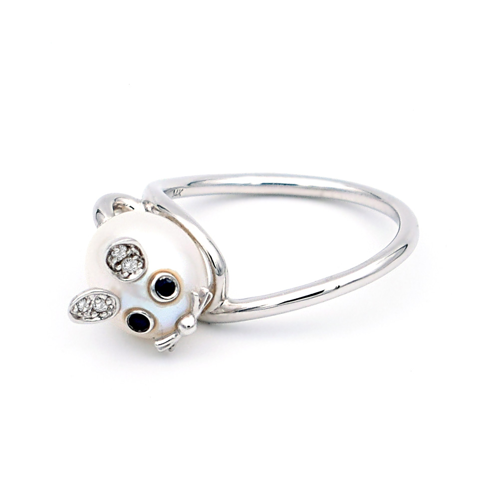 Επάνω στο μαργαριτάρι υπάρχουν λευκόχρυσα στοιχεία 18 καρατίων στα οποία υπάρχουν 4 διαμάντια 0,03 καρατίων και 2 ζαφείρια.
