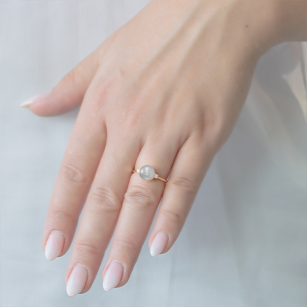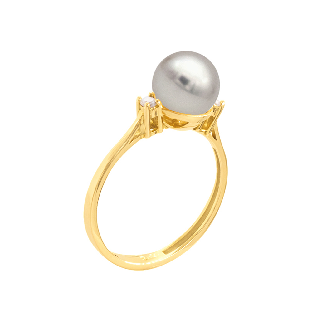 • Ένα υπέροχο δαχτυλίδι με γκρι μαργαριτάρι Q.T.V. Akoya JAPAN διαμέτρου 7,5-8 χιλιοστών σε σχήμα Round.
