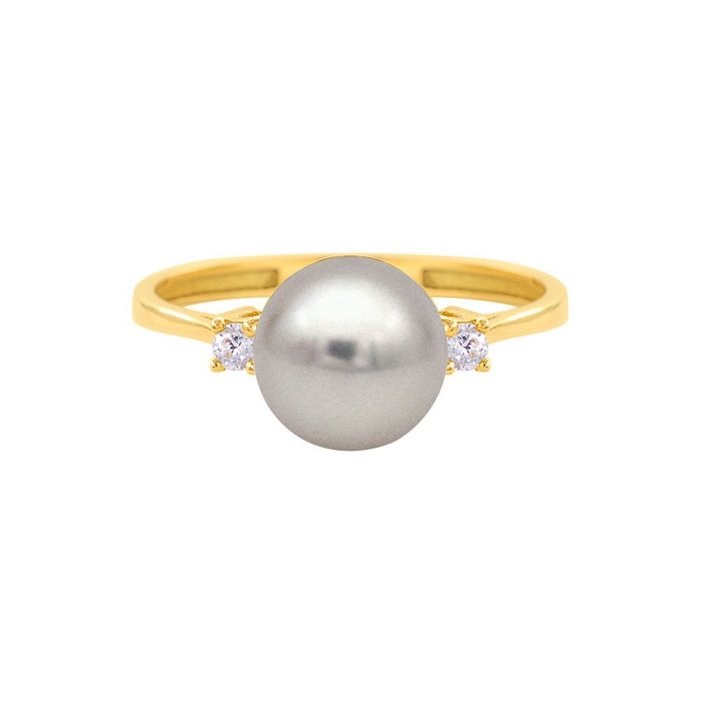 Δαχτυλίδι Κ14 χρυσό με γκρι μαργαριτάρι Akoya και ζιργκόν - R124429G