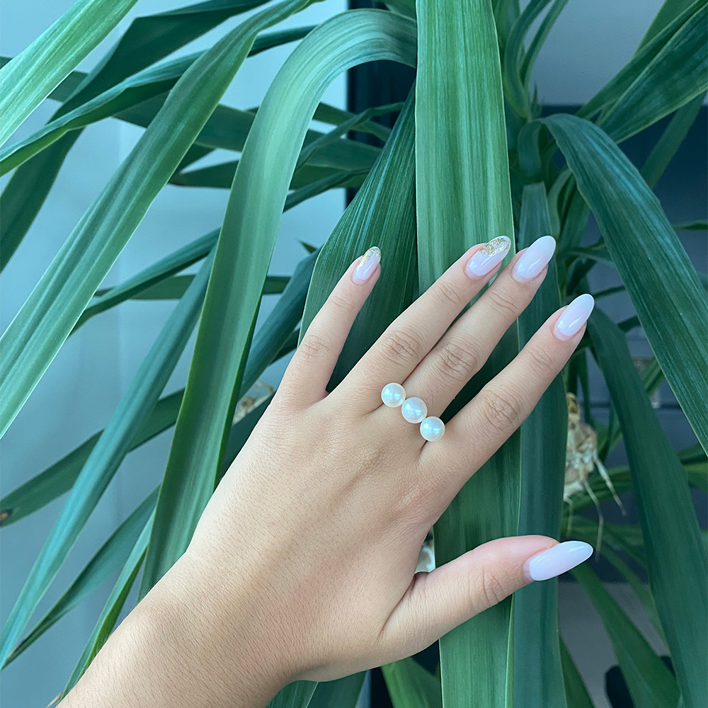 • Ένα φανταστικό δαχτυλίδι με εντυπωσιακά λευκά μαργαριτάρια Fresh Water Pearl, άριστης ποιότητας διαμέτρου 7,5-8 χιλιοστών.