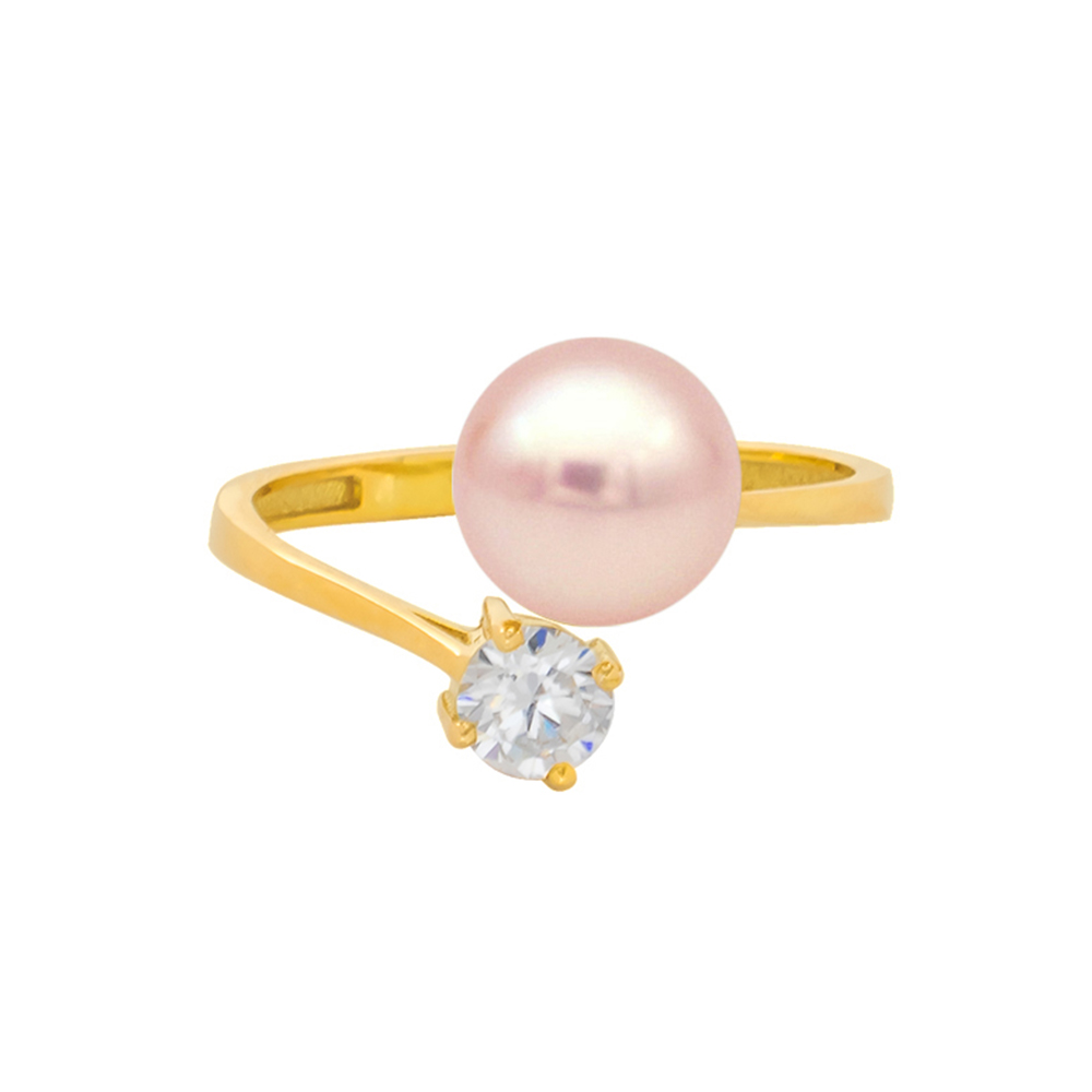 Δαχτυλίδι Κ14 χρυσό με σομόν μαργαριτάρι και ζιργκόν - R124423S