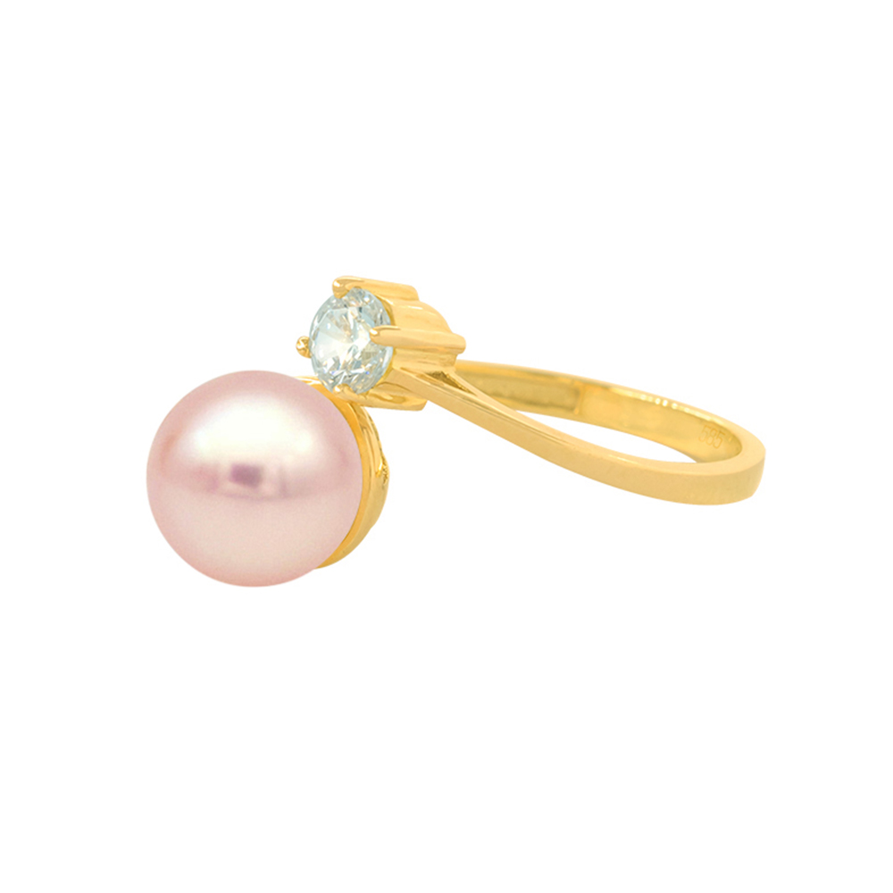 • Ένα υπέροχο δαχτυλίδι με σομόν μαργαριτάρια Q.T.V. Akoya JAPAN διαμέτρου 7,5-8 χιλιοστών σε σχήμα Round.