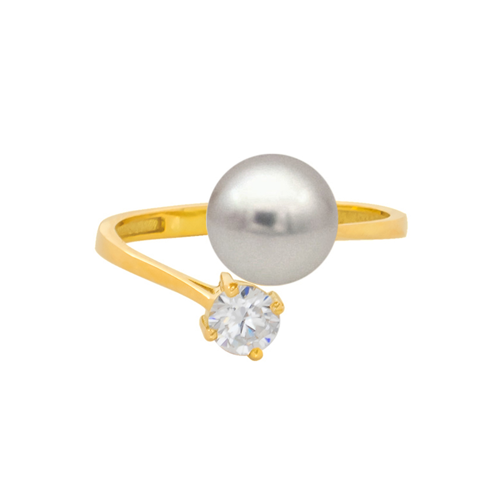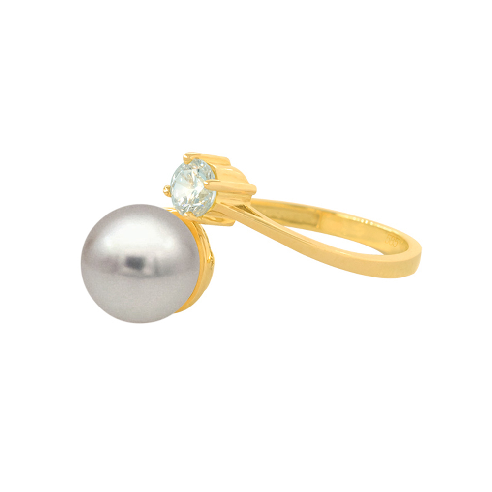Δαχτυλίδι Κ14 χρυσό με γκρι μαργαριτάρι και ζιργκόν - R124423G