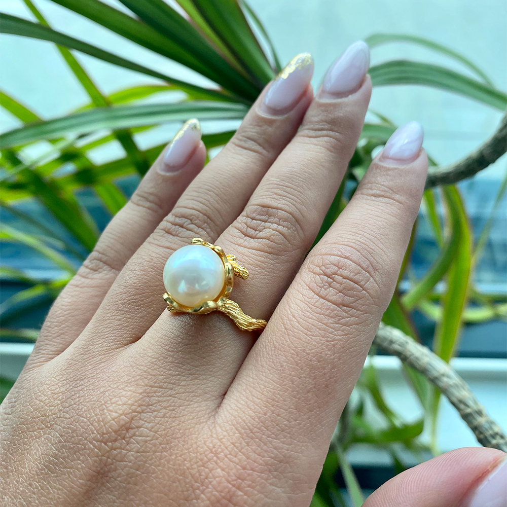 • Ένα πανέμορφο χειροποίητο δαχτυλίδι από ασήμι 925 με ένα φυσικό λευκό μαργαριτάρι QTV Akoya διαμέτρου 10 χιλιοστών, άριστης ποιότητας.