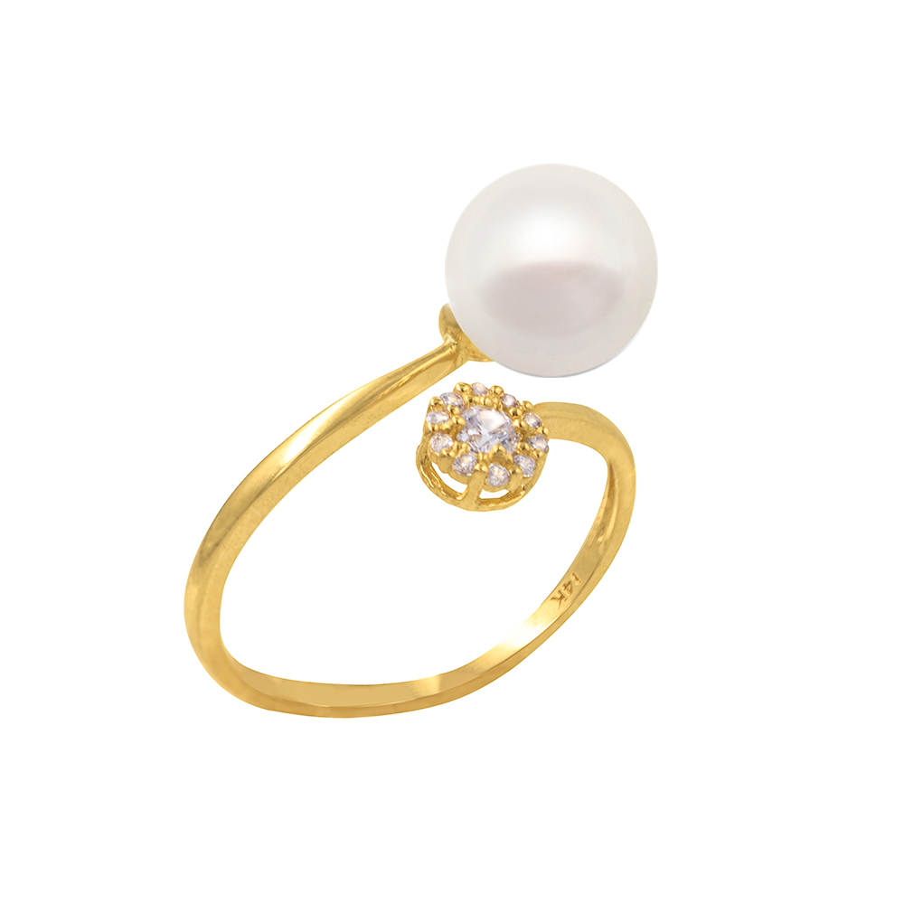Δαχτυλίδι Κ14 χρυσό με λευκό μαργαριτάρι και ζιργκόν -R125198