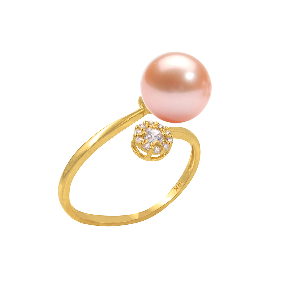 Δαχτυλίδι Κ14 χρυσό με σομόν μαργαριτάρι και ζιργκόν - R125198S