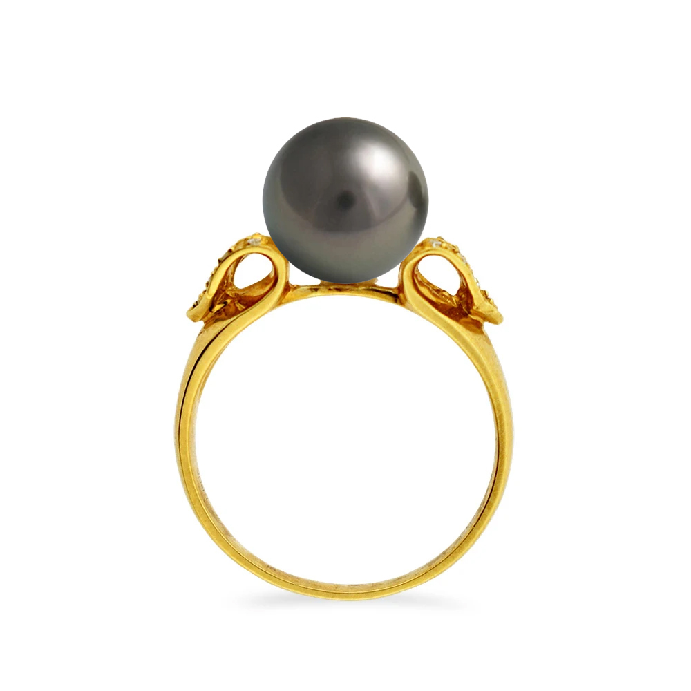 • Ένα φανταστικό δαχτυλίδι με μαύρο ολοστρόγγυλο μαργαριτάρι θαλάσσης QTV Akoya Pearl, άριστης ποιότητας διαμέτρου 10-10,5 χιλιοστών.