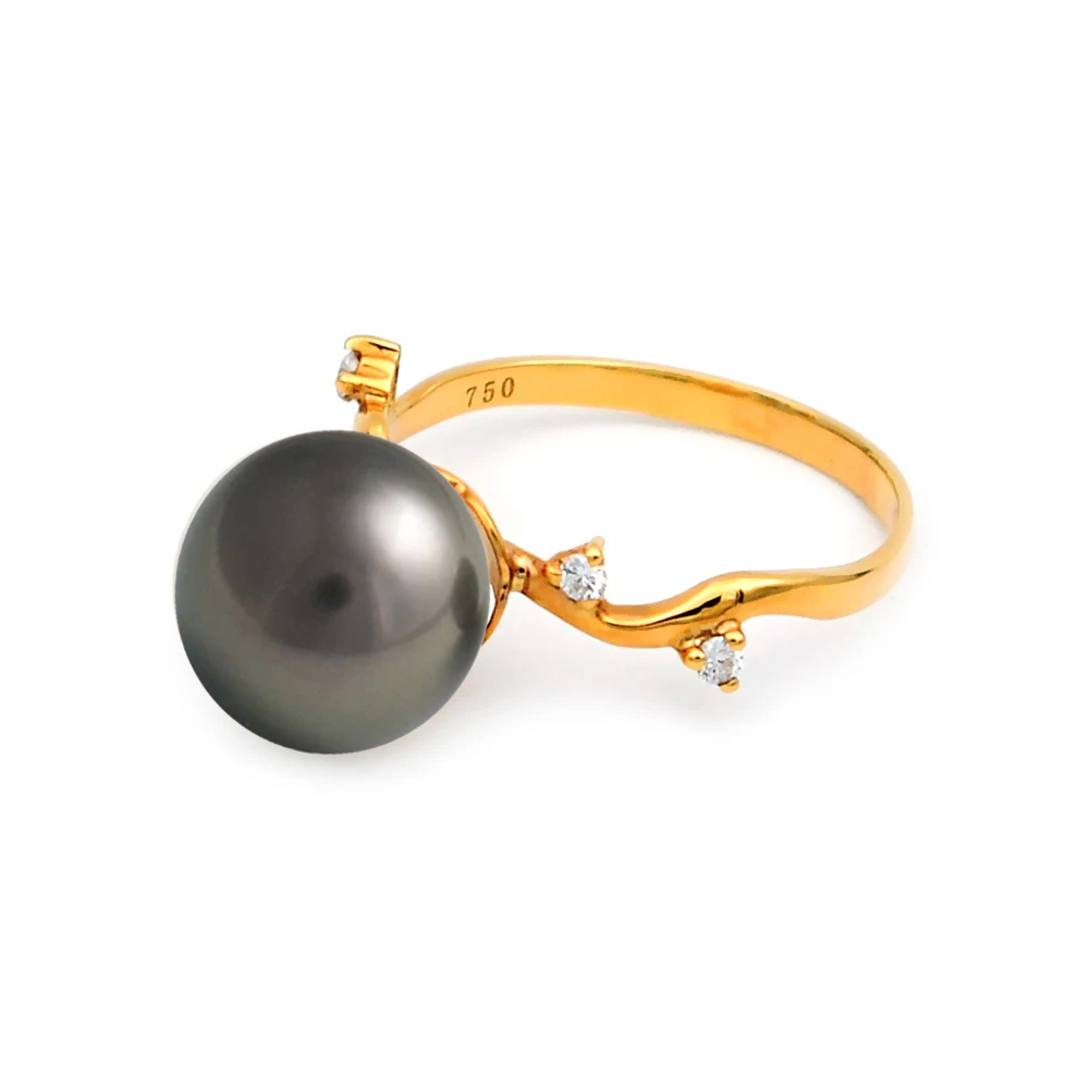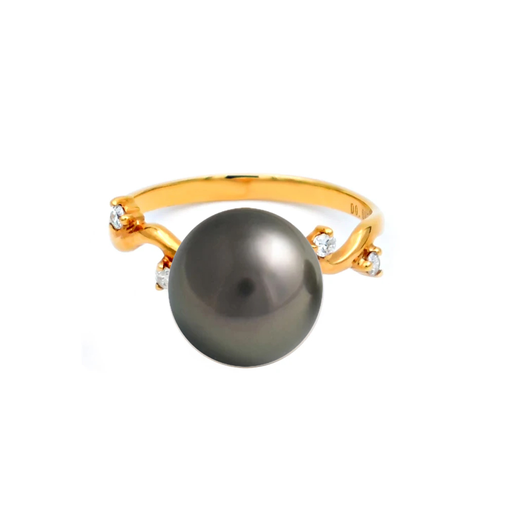 • Ένα φανταστικό δαχτυλίδι με μαύρο ολοστρόγγυλο μαργαριτάρι θαλάσσης QTV Akoya Pearl, άριστης ποιότητας διαμέτρου 10-10,5 χιλιοστών.