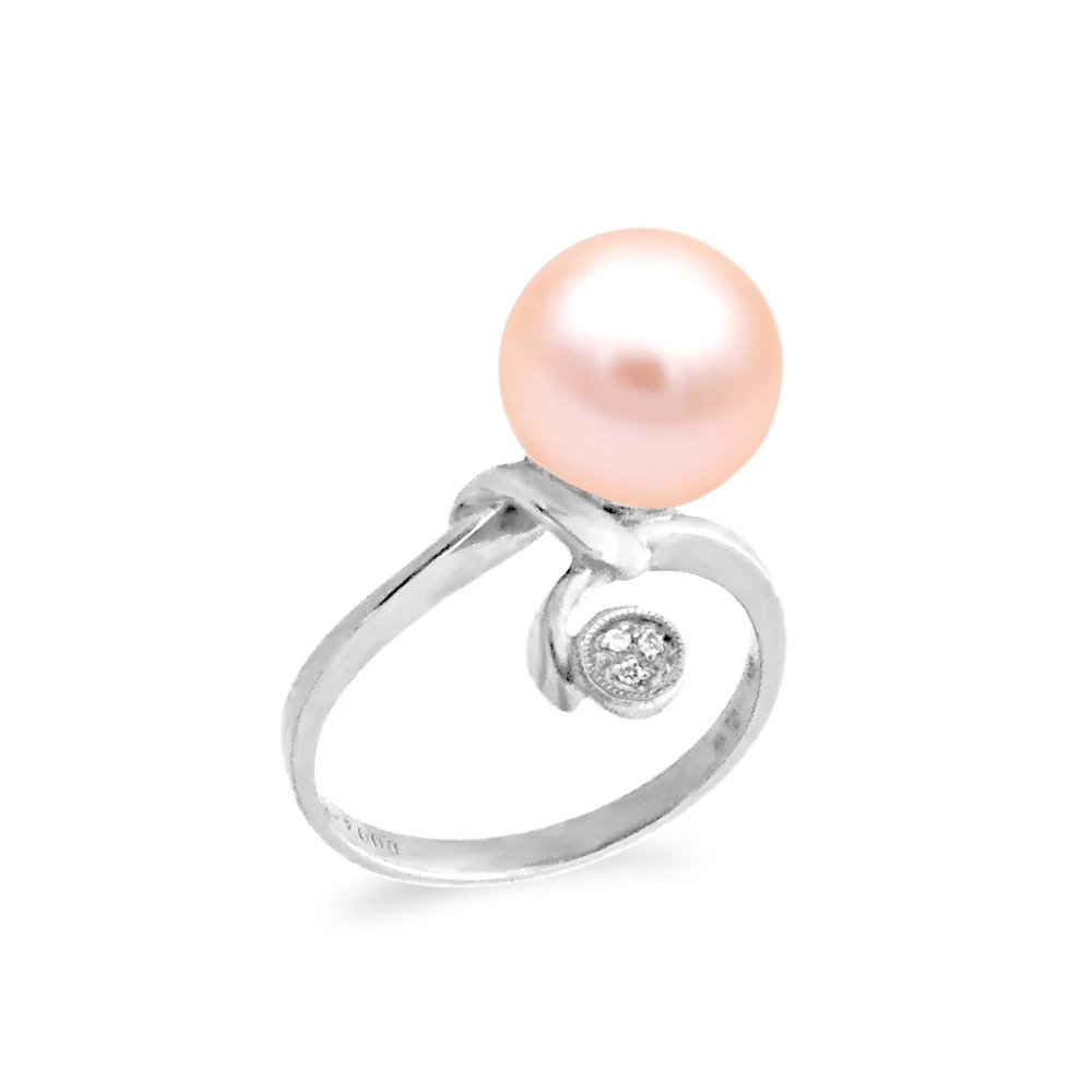• Ένα φανταστικό δαχτυλίδι με σομόν ολοστρόγγυλο μαργαριτάρι QTV Akoya Pearl, άριστης ποιότητας διαμέτρου 10-10,5 χιλιοστών.
