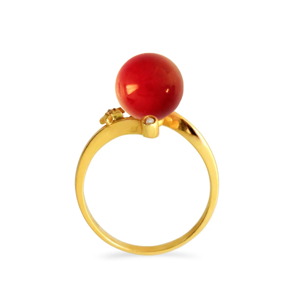 Δαχτυλίδι Κ18 χρυσό με κοράλλι και διαμάντια - M319263C