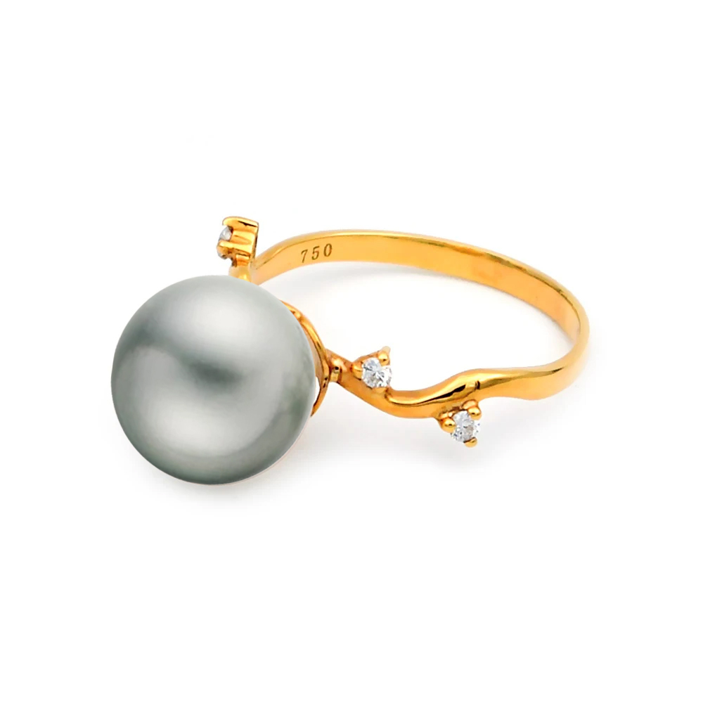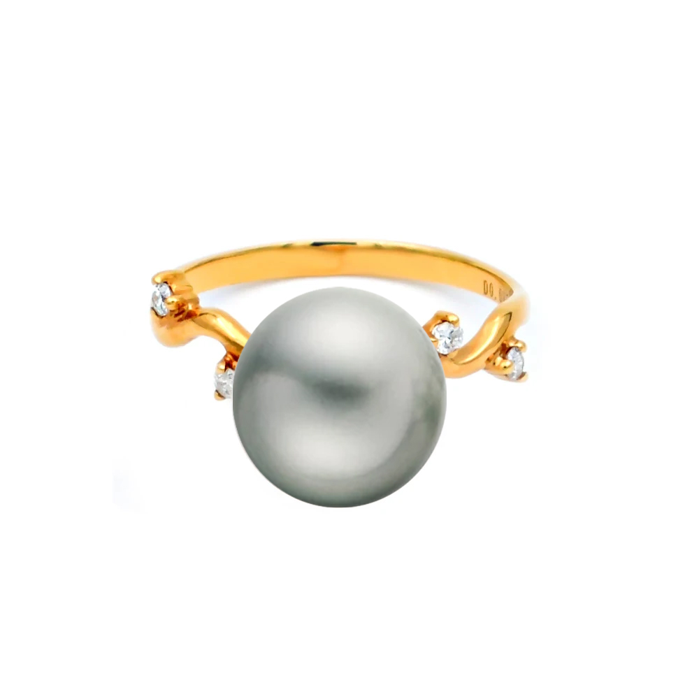 • Ένα φανταστικό δαχτυλίδι με γκρι ολοστρόγγυλο μαργαριτάρι θαλάσσης QTV Akoya Pearl, άριστης ποιότητας διαμέτρου 10-10,5 χιλιοστών.