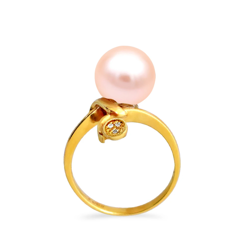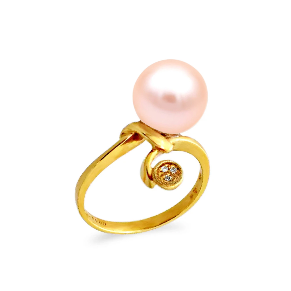 • Ένα φανταστικό δαχτυλίδι με σομόν ολοστρόγγυλο μαργαριτάρι QTV Akoya Pearl, άριστης ποιότητας διαμέτρου 10 - 10,5 χιλιοστών.