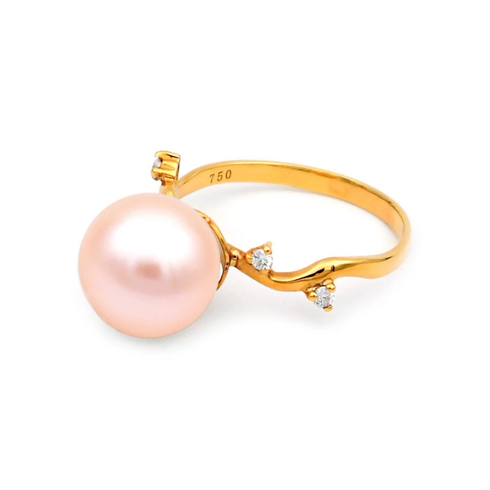 Δαχτυλίδι χρυσό Κ18 με σομόν μαργαριτάρι Akoya - F319310S