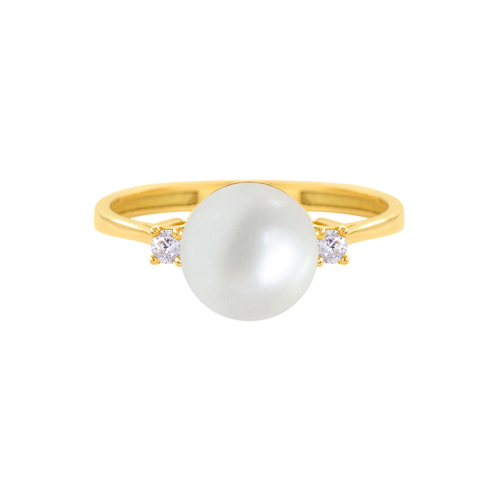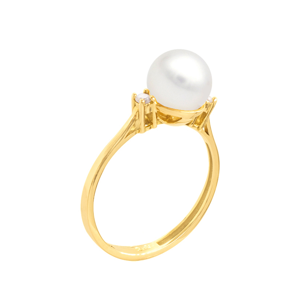Δαχτυλίδι Κ14 χρυσό με λευκό μαργαριτάρι Akoya και ζιργκόν - R124429