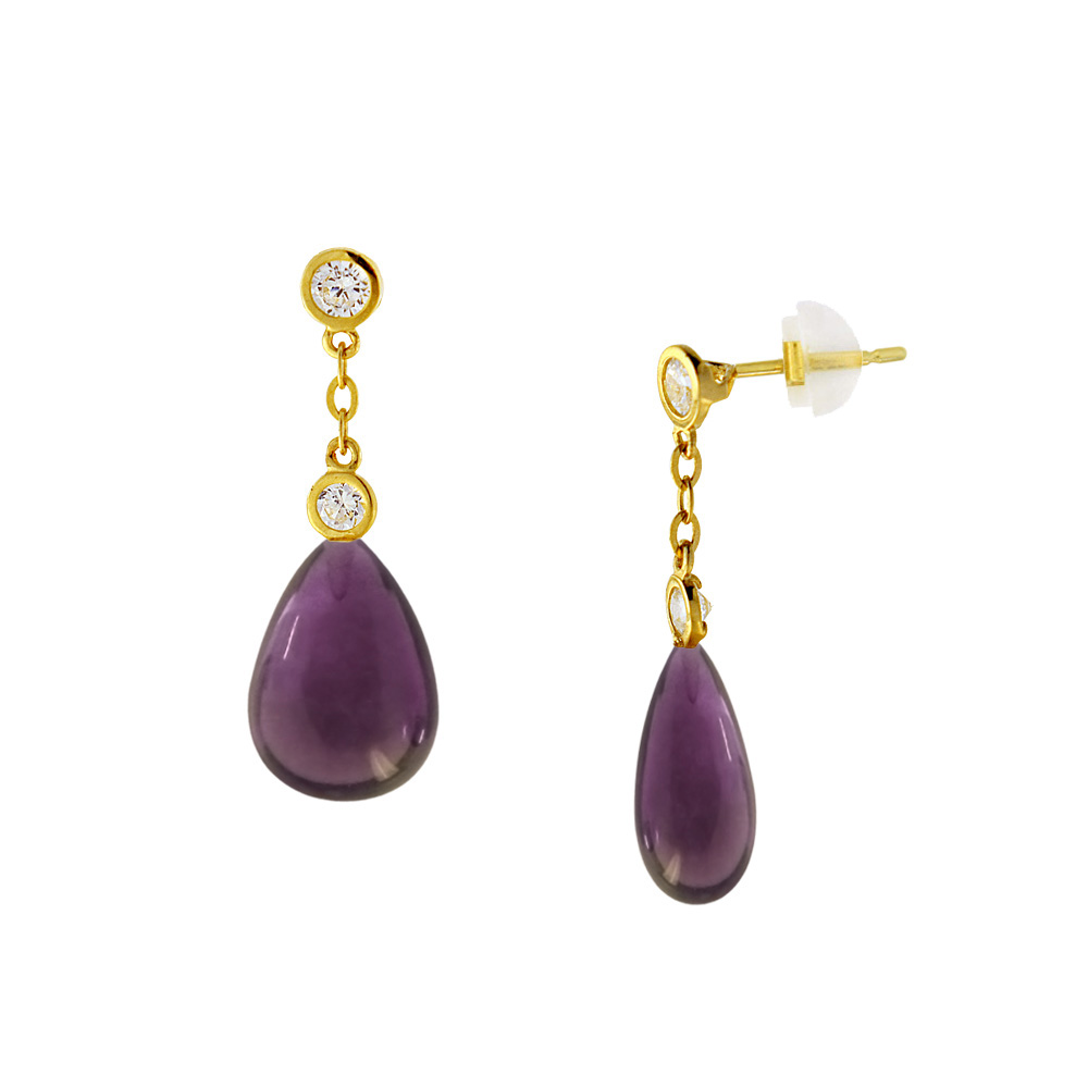 • Ένα φανταστικό ζευγάρι σκουλαρίκια με 2 ημιπολύτιμους λίθους Amethyst CZ σε σχήμα Drop (σταγόνα), διαμέτρου 9,0 x 12,5 χιλιοστών.