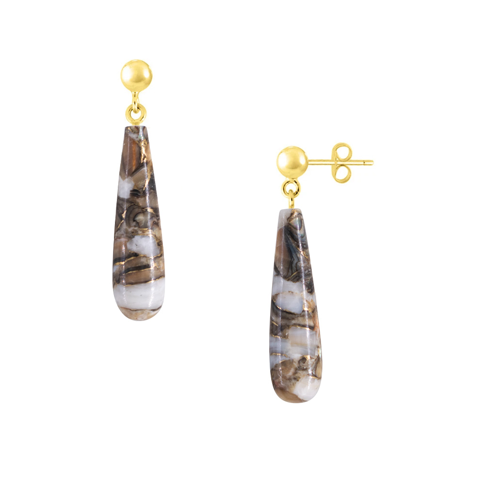 • Ένα υπέροχο ζευγάρι κρεμαστά σκουλαρίκια με ημιπολύτιμο λίθο Spiny Oyster σε σχήμα σταγόνας με διάσταση 8x30 χιλιοστών και γήινες αποχρώσεις.
