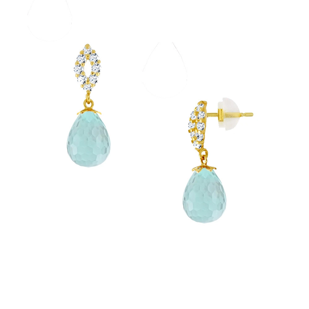 • Ένα υπέροχο ζευγάρι κρεμαστά σκουλαρίκια με φασεταρισμένο ημιπολύτιμο λίθο Aqua διάστασης 7x10 χιλιοστών σε σχήμα σταγόνας.